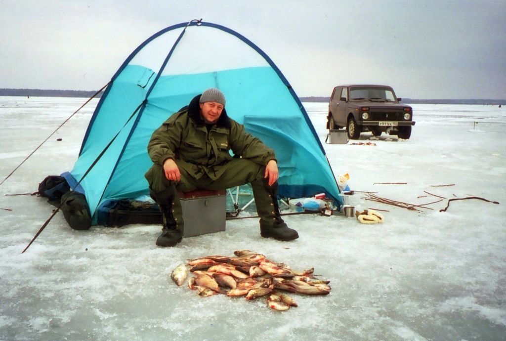 Яузское водохранилище (210 км. по Новойриги от Москвы). Темпиратура днем +2, ночью -5, толщина льда-примерно 40 см.