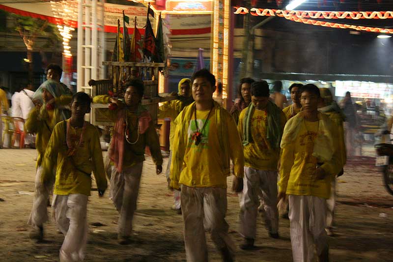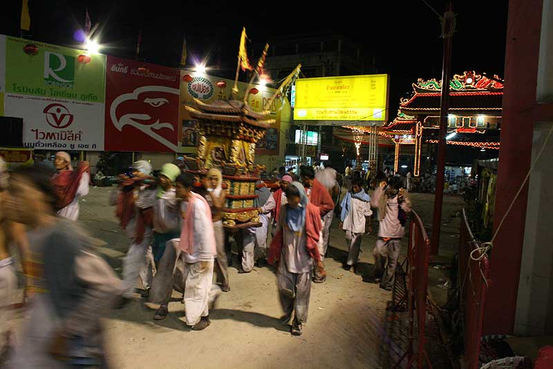 Финальное действо продолжается до полуночи. Усталые, обожженные, но довольные участники процессий возвращаются к Бангняо, главному китайскому храму города. Фигурки богов возвращаются в храм, спать ещё год, до следующего Вегетарианского Фестиваля, жители Пхукет-таун – домой, отмывать копоть с лиц и залечивать ожоги от петард, а немногочисленные белые туристы – в отели, осмысливать, что же на самом деле им довелось увидеть.