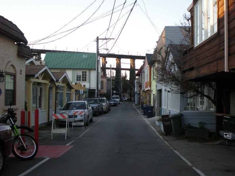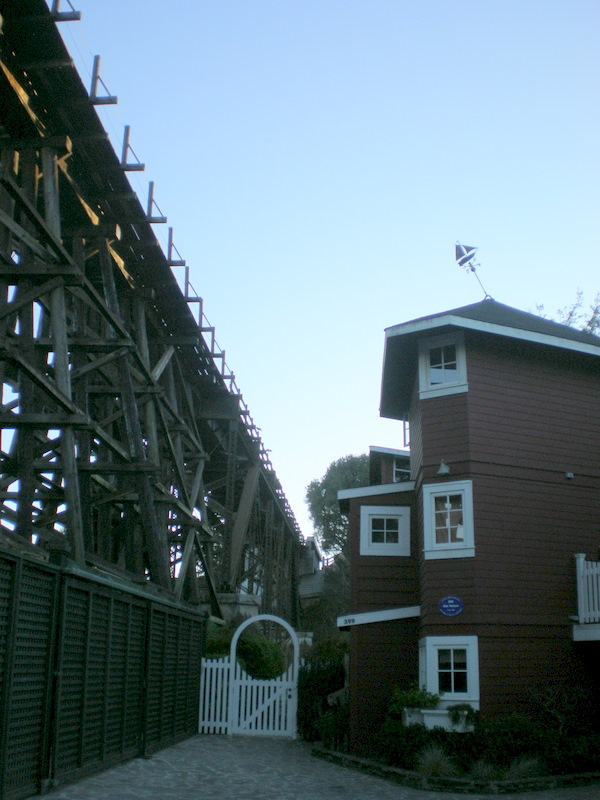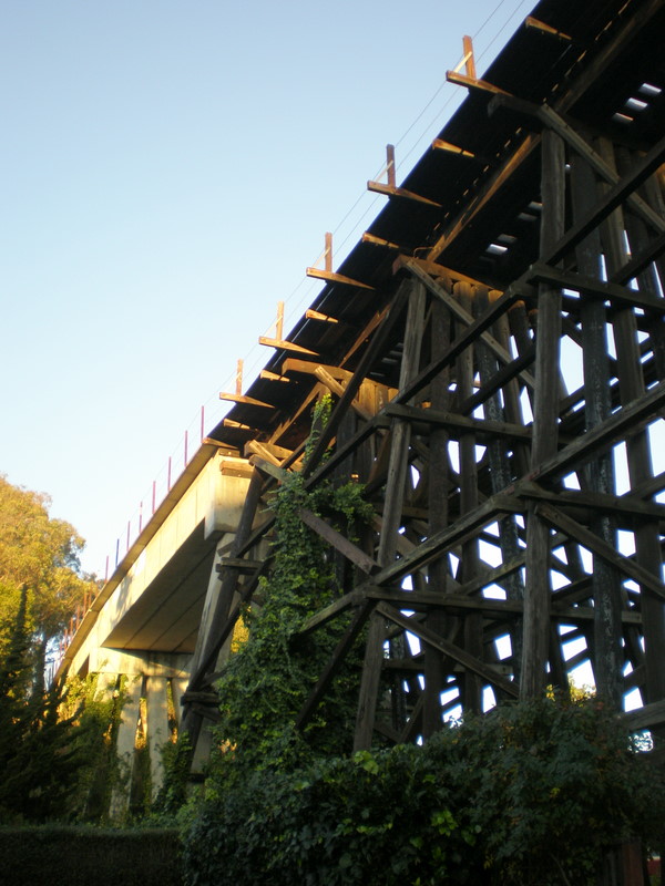 Знаменитая улица серфенгистов упирается еще в одну достопремечательность - старый деревяный железнодорожный мост, еще не так давно по нему поезда бегали, теперь в поездах нужды нет, железную дорогу разобрали а мост оставили на память