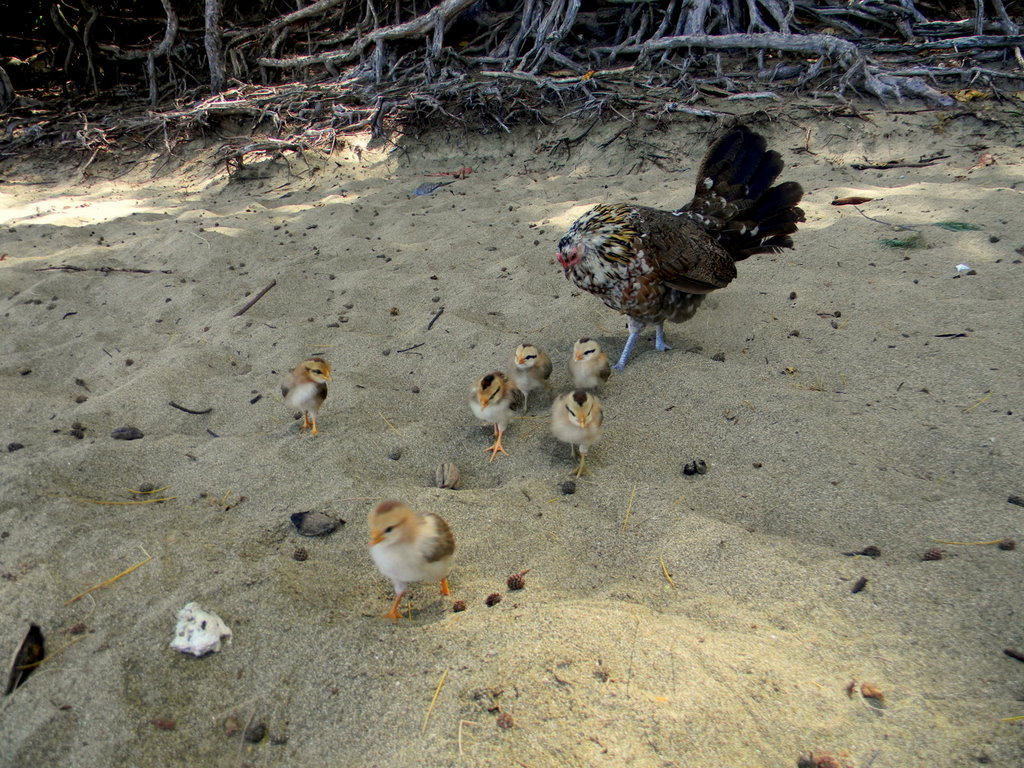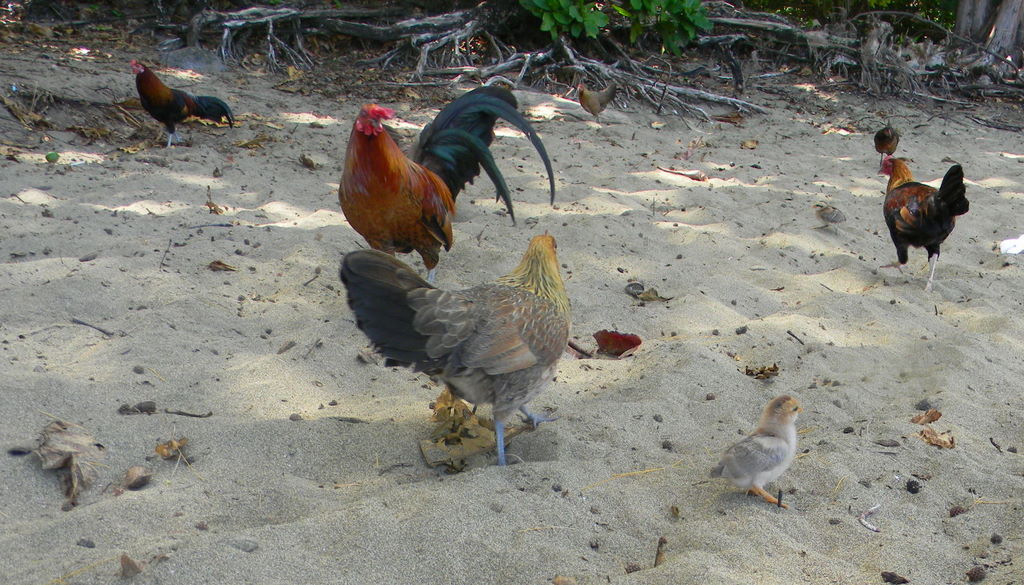39-44 Куры - в 1992 году случился невъебенный ураган (к слову сказать их случается каждый год в среднем 4 и более раз) который разметал к хуям собачьим курячие фермы , которыми изобиловал остров. Курице разбрелись по острову и со временем одичале и так как не было ни какой возможности отлавить и вернуть их хозяевам. Теперь они (куры) достопримечательность на которой местное население делает свои небольшие но стабильные деньги.