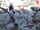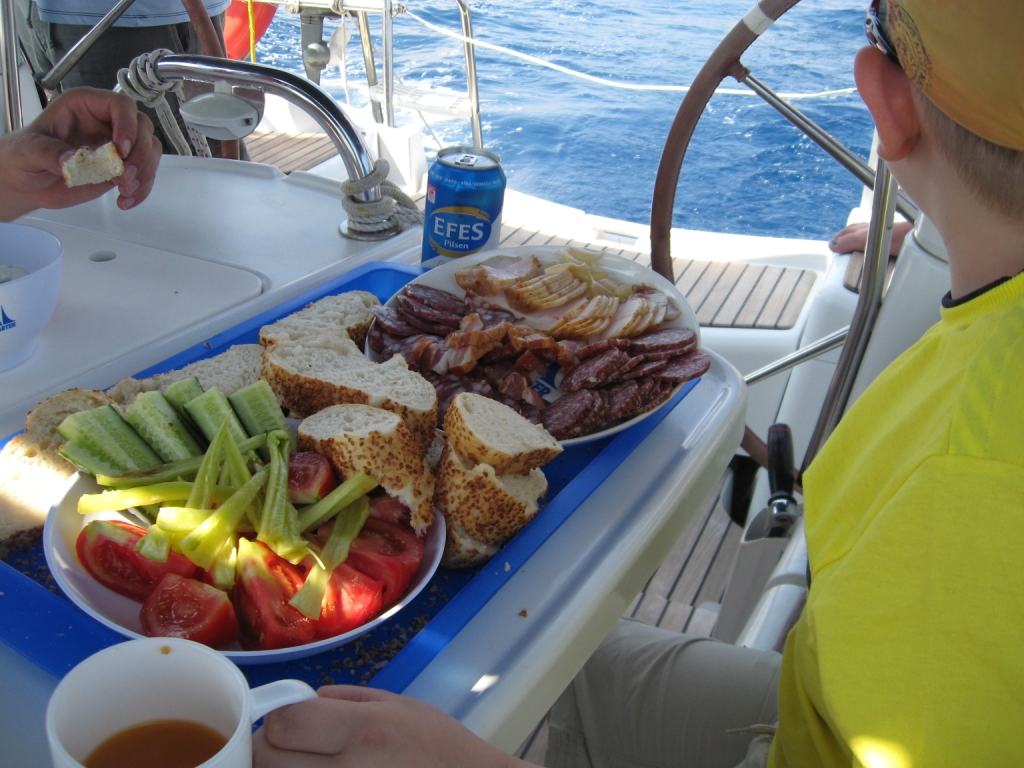 Выпито четырьмя здоровыми мужиками за неделю прибывания на яхте и тремя днями в гостинице виски 4 литра, джин 7 литров, ром 2 литра, коняк-бренди 1,5литра, пиво, хуёвое оно не пошло, литров 20литров. И ни кого не укачало. Это я пишу к тому, что на яхте, в море - спиртное усваивается и выводиться без вреда для организма . Проверено три раза. На фотке 11, еда, которая сука пропала из за лени её жрать и укладывать в холодильник.