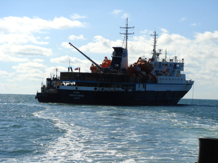 9. С рейда на берег перемещаемся на заросшем водорослями баркасе, с чудным именем "НАДЕЖДА".