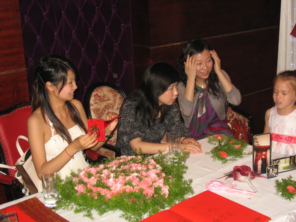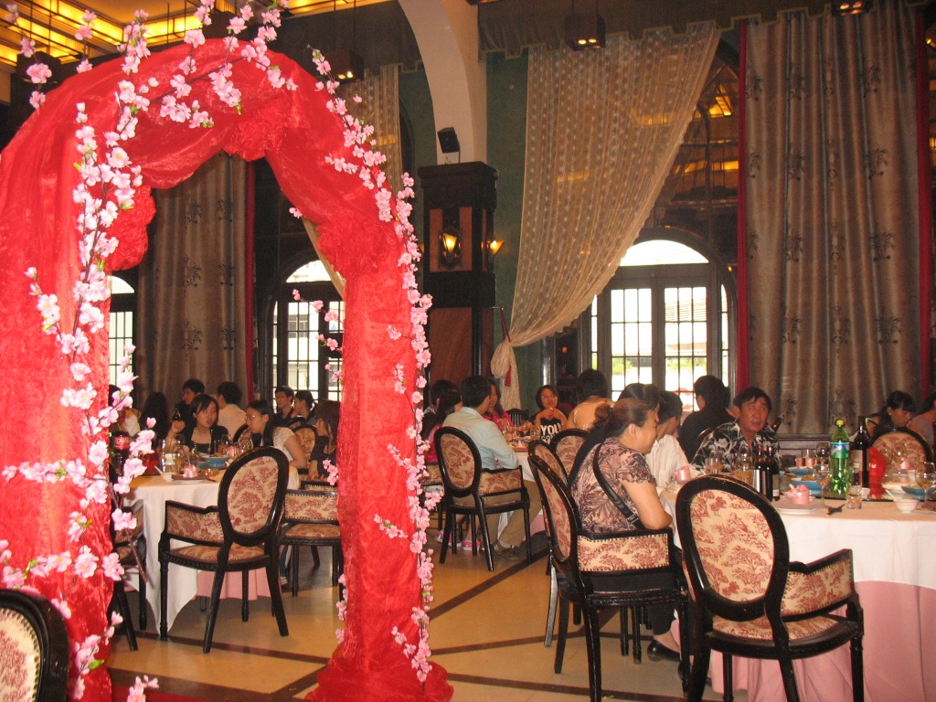 Там же, в Сучжоу, она и пригласила меня на свадьбу. А где-то в середине мая прислала уже официальное приглашение. Были приглашены и почти все остальные её одногруппники, в общем, много знакомых моих, поэтому в минувшую пятницу с удовольствием отправился в центр Шанхая, на пешеходную улицу Нанкин. В одном из исторических зданий, где на радость людям сейчас магазины и рестораны, свадьба, как и полагается, «пела и плясала».