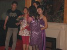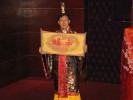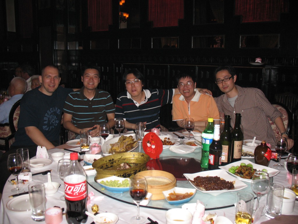Хм... я соврал немного. На китайской свадьбе не пляшут и почти не поют. Гости собираются в ресторане, дарят подарки (чаще всего деньги в красном конверте, четную сумму – ведь деньги «на двоих»), рассаживаются за столами, и много кушают. Почти не пьют – сами видите, на столах – бутылка вина, два-три пива, спрайт-кола-сок. За столом обычно человек восемь. Потом невеста еще приносила на каждый стол по кувшинчику «байцзю» - китайской водки, но никто не пил, кажется.