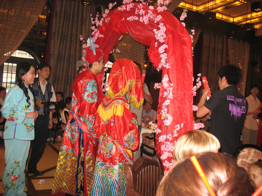 Потом было даже нечто вроде викторины и конкурса – для китайской свадьбы весьма необычно, чаще все ограничивается посиделками за столами. Невеста бросала букет, резала совместно с женихом торт, угощала родителей жениха вином – когда рождается в семье девочка, горшок с вином закапывают в землю до её свадьбы. А потом, на свадьбу, его извлекают и распивают. Насчет вкуса не знаю, но, учитывая, что оно уже изначально довольно специфично, могу представить, что с ним лет за двадцать пять происходит...