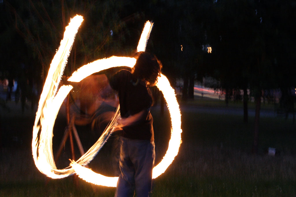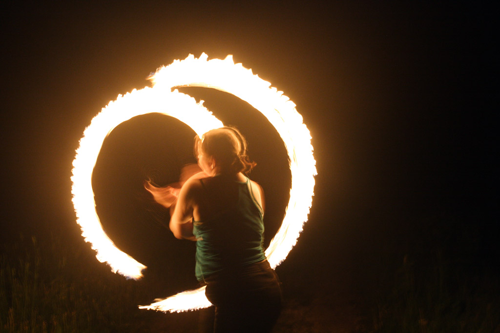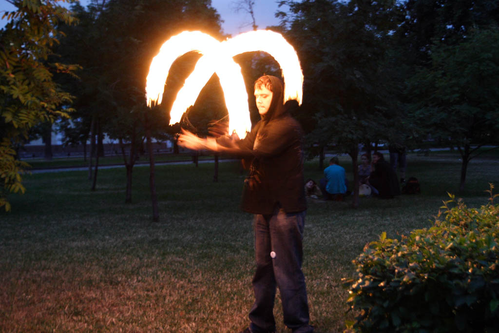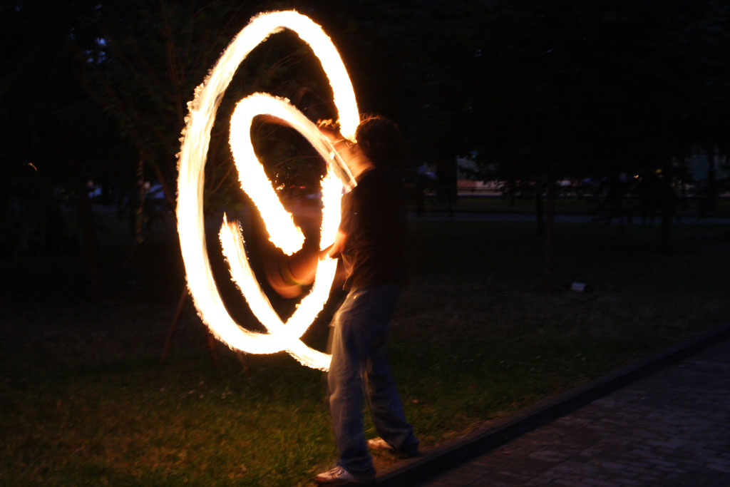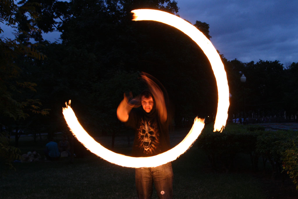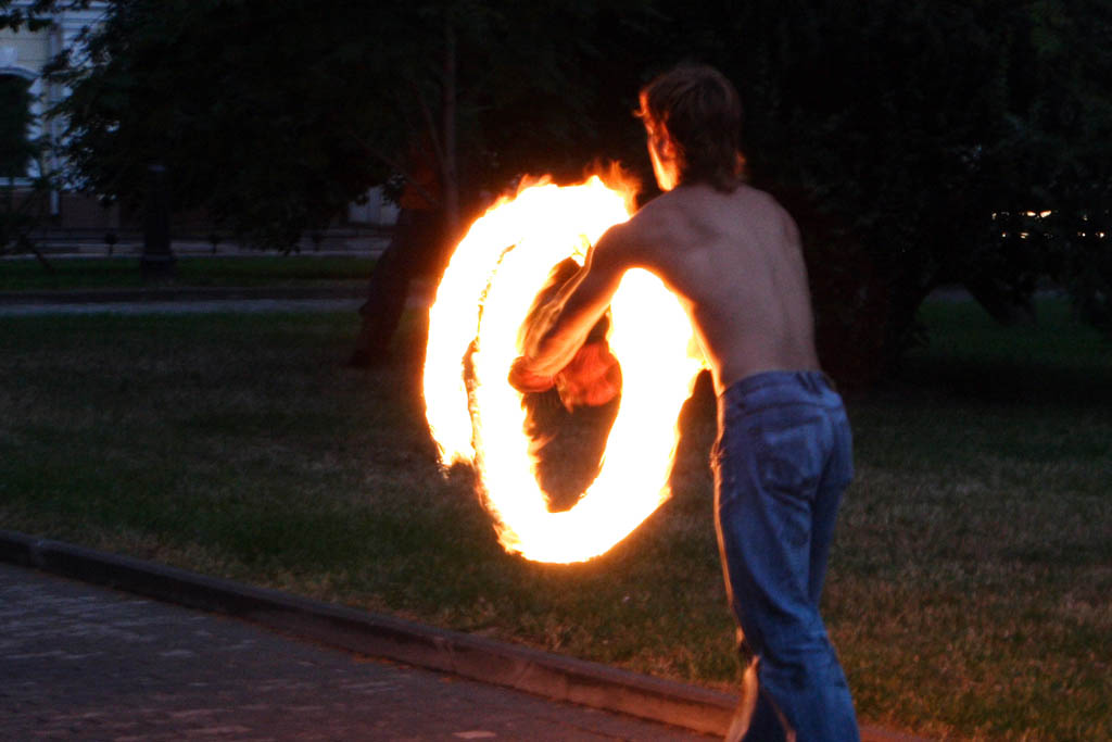 Движение файерщиков стремительно расширяется, создаются целые ассоциации клубов, много сайтов, форумов, фестивалей, куча информации. Сам этим не занимаюсь, тонкостей не ведаю, но черт возми внешне очень лихо у них получается, к тому же обязательный стук там-тама на фоне.