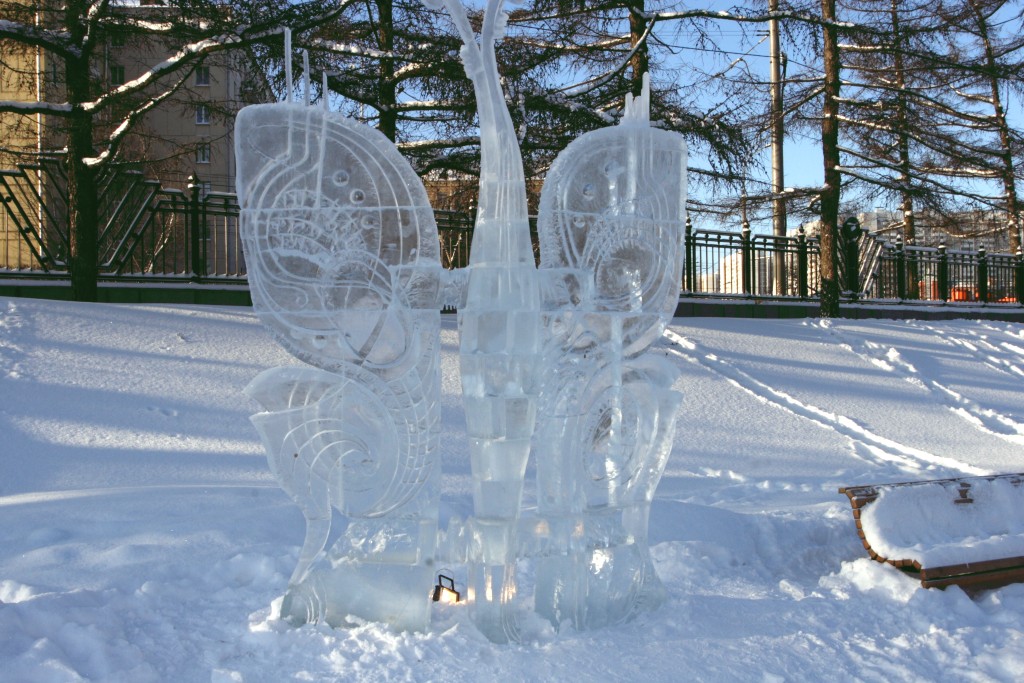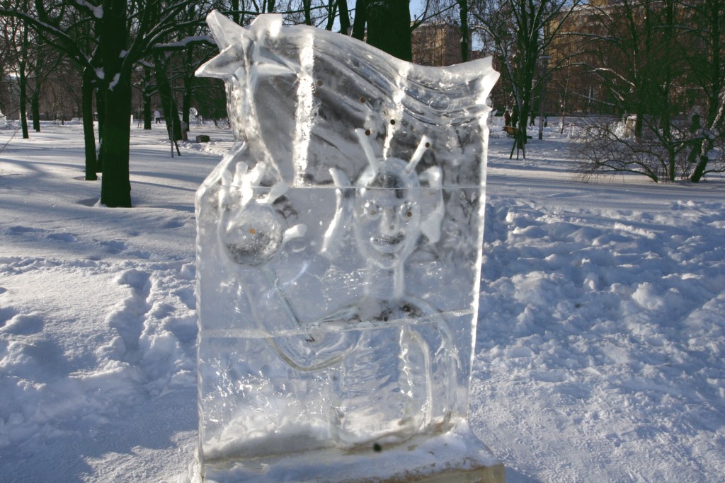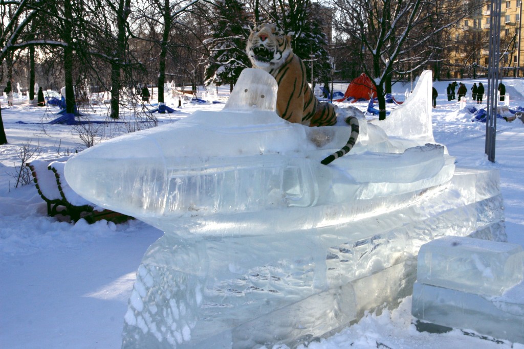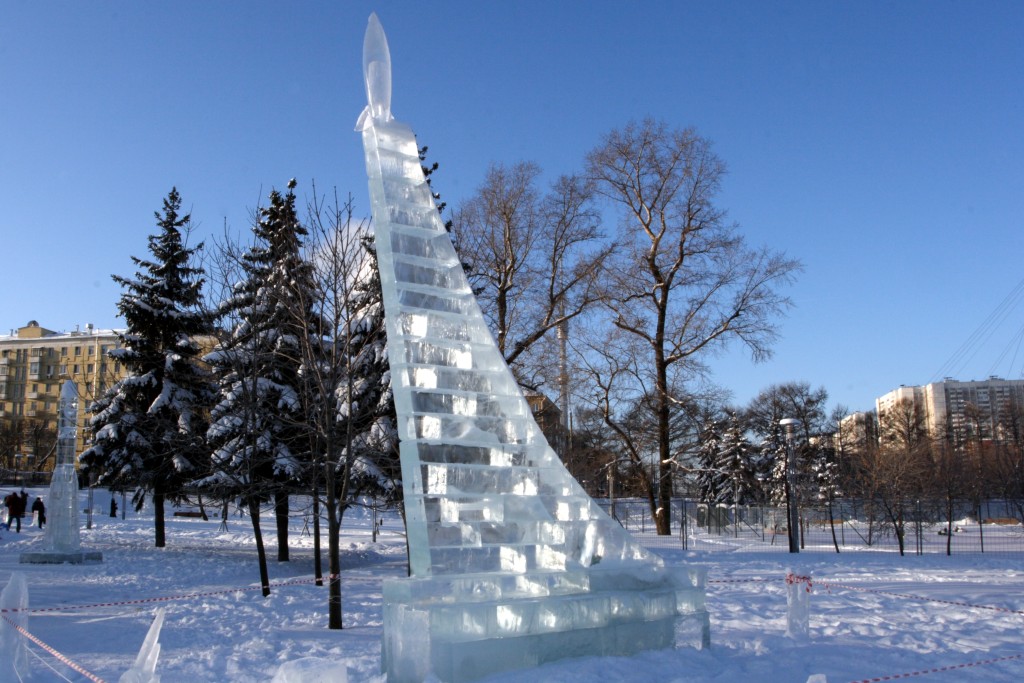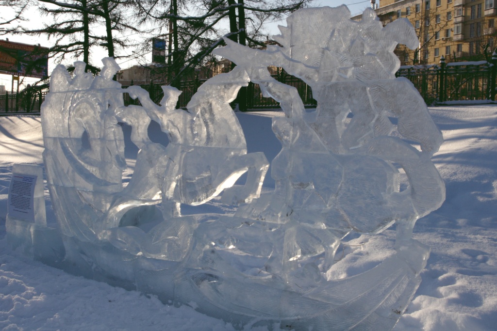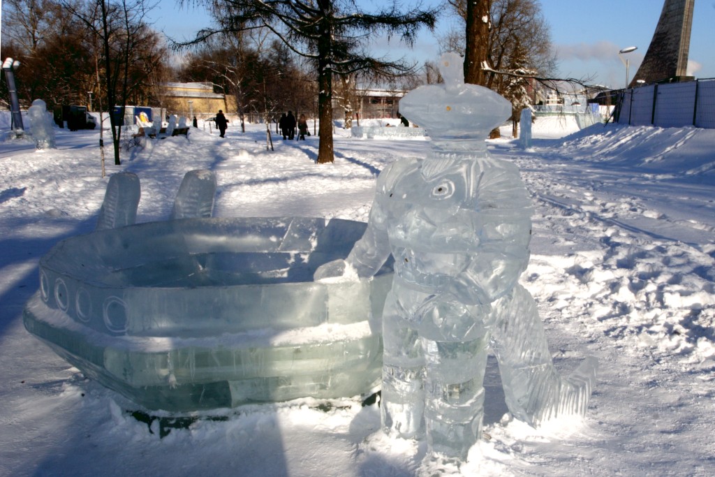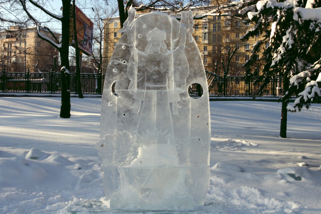 У нас в России, где среднегодовая температура в столице всего 5,5 градуса тепла, это актуально и всегда под боком. Желающие попробовать ждут холодов, обзаводятся электропилой, топором, ножовкой, стамеской рашпилем, а дальше мера и красота покажет. Можно напилить блоки в ближайшем водоеме, или в корыте наморозить, но мутные получатся. Профи отливают заготовки в льдогенераторах. Получаются стокилограммовые чушки. Идеально прозрачные. (1-0,5-0,2). Стоят денег, 2500-3000 рублей, а делают фигуру по эскизу заказчика от 15000 рублей. Как иллюстрация, Московский фестиваль ледовых фигур, около ВДНХ. Есть еще музей фигур на Красной Пресне, круглый год. Любопытно. Подобное можно увидеть во многих городах.