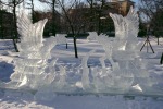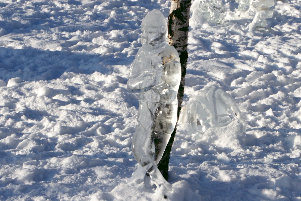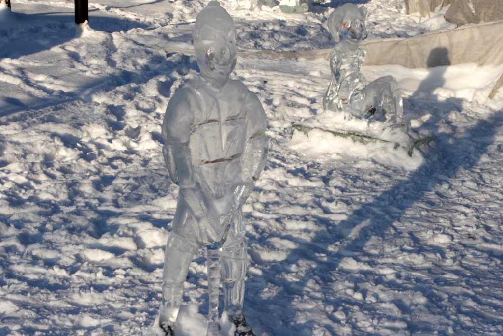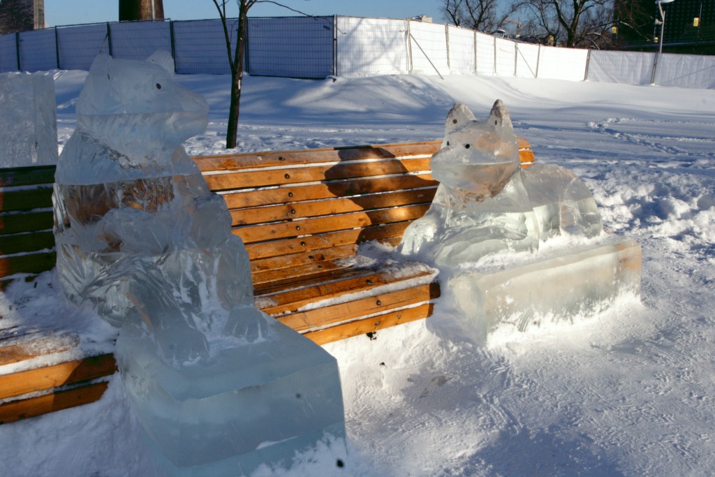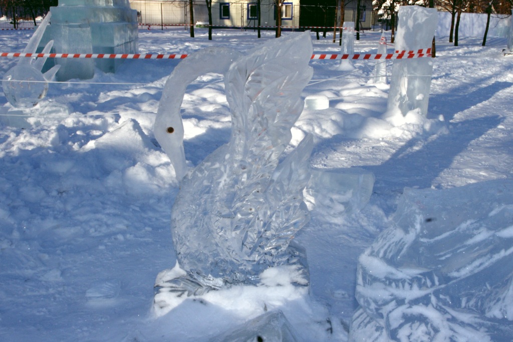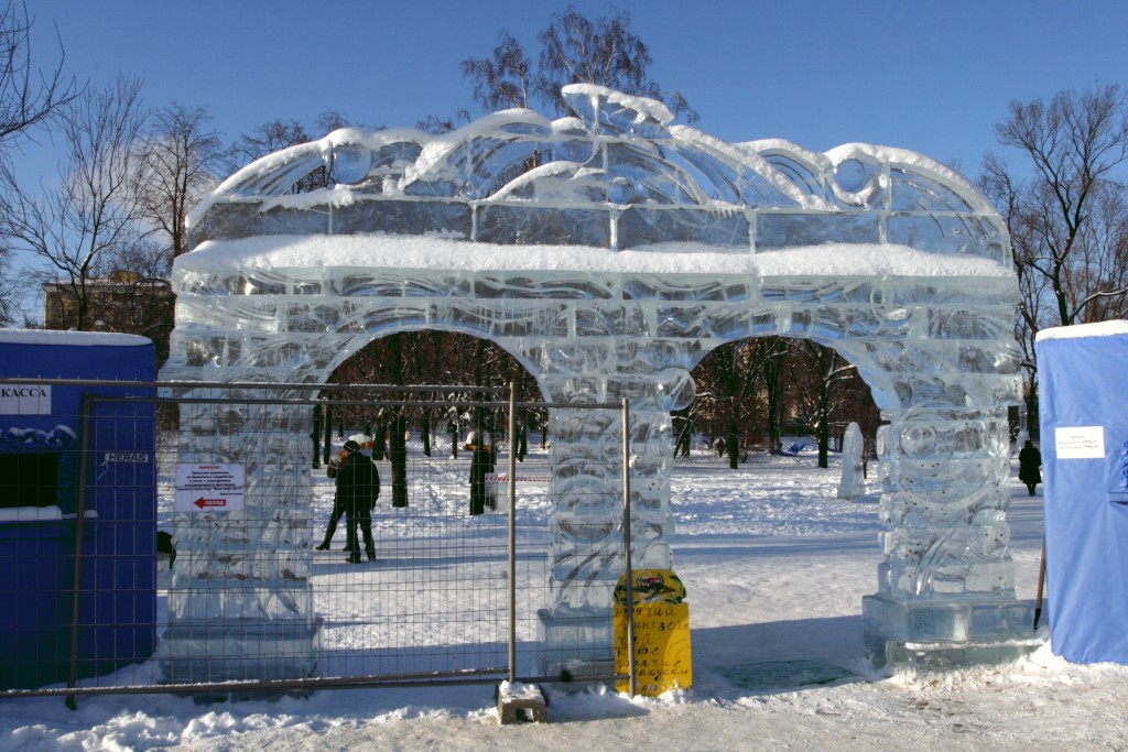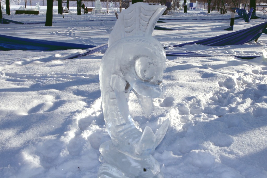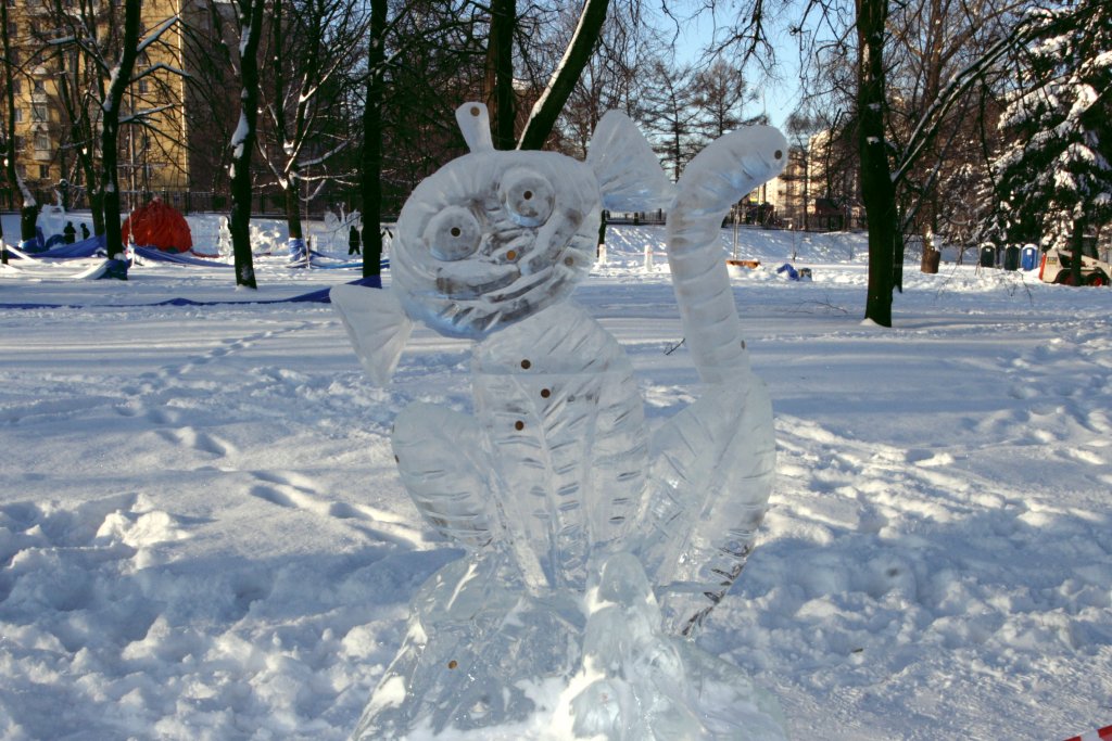 У нас в России, где среднегодовая температура в столице всего 5,5 градуса тепла, это актуально и всегда под боком. Желающие попробовать ждут холодов, обзаводятся электропилой, топором, ножовкой, стамеской рашпилем, а дальше мера и красота покажет. Можно напилить блоки в ближайшем водоеме, или в корыте наморозить, но мутные получатся. Профи отливают заготовки в льдогенераторах. Получаются стокилограммовые чушки. Идеально прозрачные. (1-0,5-0,2). Стоят денег, 2500-3000 рублей, а делают фигуру по эскизу заказчика от 15000 рублей. Как иллюстрация, Московский фестиваль ледовых фигур, около ВДНХ. Есть еще музей фигур на Красной Пресне, круглый год. Любопытно. Подобное можно увидеть во многих городах.