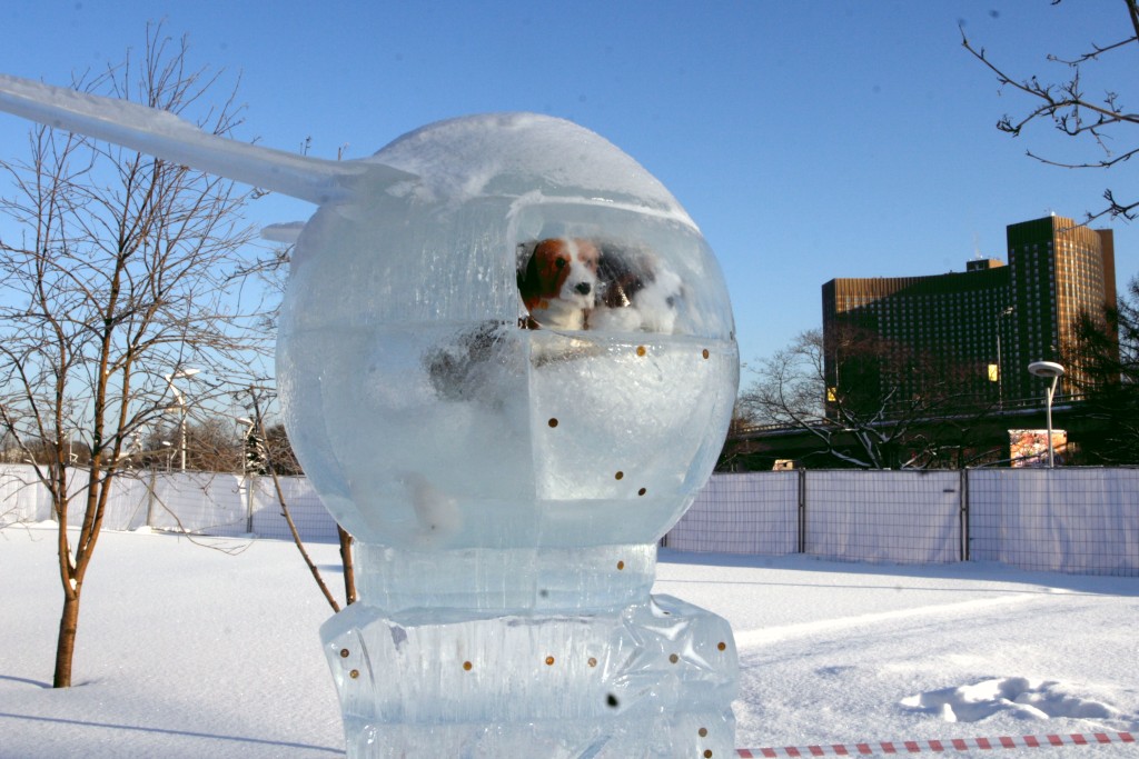 Умелила фотка с закатанными в лёд двумя бобекаме. И не жалко было собачег?