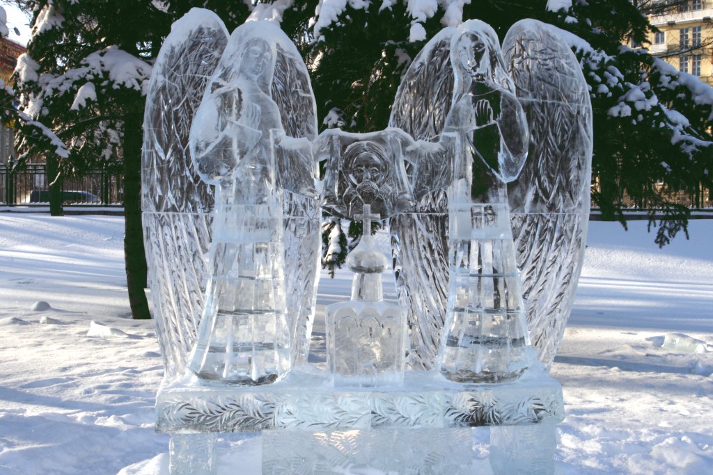 Но можно изо льда и красоту изготовить. Ледовые скульптуры – отдельная тема, которая сейчас только набирает силу. И до чего только не додумались. Скульптуры, баннеры, ледовые украшения торжеств, барные стойки, павильоны, беседки, логотипы, подарки вмороженные в лед, одноразовая посуда. В Питере даже дом наморозили с музеем погибшим в блокаду.