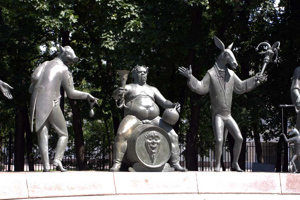 В центре Москвы, на Болотной площади, Лужков был автором некоторых фигур. Наиболее симпатичный персонаж - толстый мужик на бочке, Пьяница, Самый красивый порок.