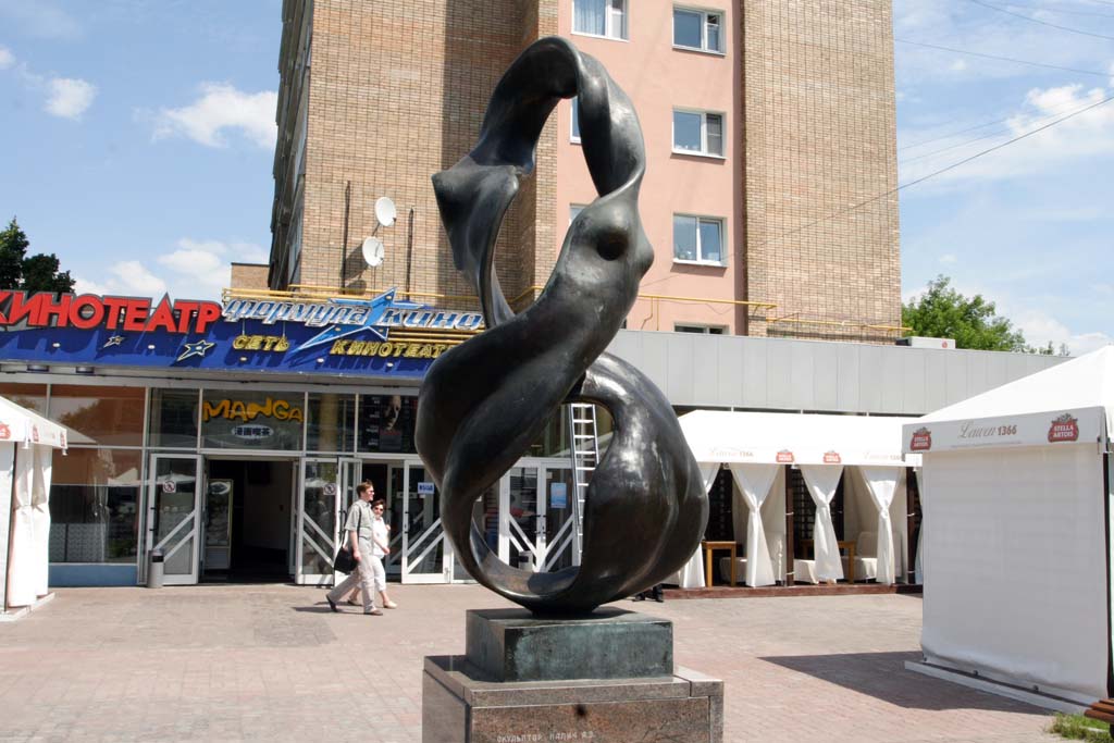 Очепятка, конечно Мебиус, данную петлю он увидел на шее своей горничной, она криво платок завязала, можно попасть из точки в точку не пересекая грань. Памятников в мире много, московский вариант имеет ярко выраженное женское начало.