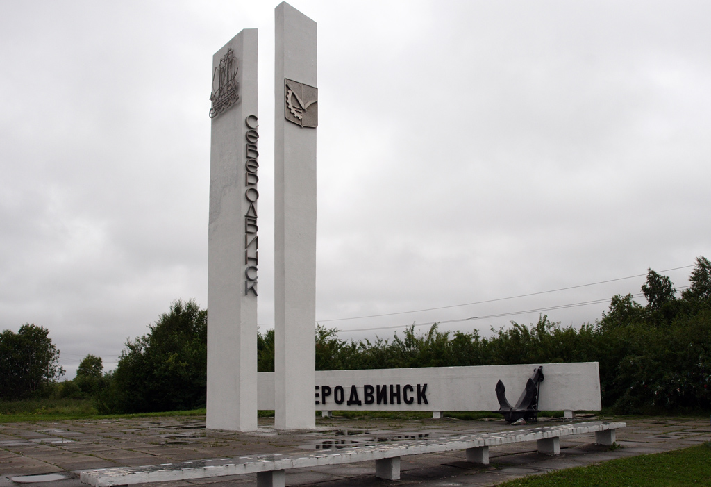 Северодвинск (с 1957 года) стоит на уникальной многометровой искусственной «подушке». Недостатка в людях не было и буквально за 30 лет отгрохали современный промышленный центр. Есть чем гордиться, судостроительные эллинги вошли в книгу Гинесса, в один входит несколько Исаакиевских соборов или 5 футбольных полей. Заводы «Севмаш» и «Звездочка», производство атомных подлодок, а сейчас и морских буровых установок. Город большой, 240 тысяч, очень высокая квалификация работающих, сплошная промзона, смотреть не на что, скучно как-то. Фотографий мало, да и нехорошо ходить по военному городу с фотоаппаратом. Проехали, поглазели, зашли в два магазина, полный полки, все есть. С моста видели в бухте «изделия», очевидно старые. Кому интересно посмотрите из космоса, забавно.