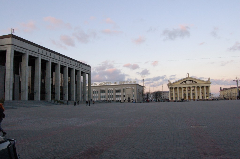Шматье с утра брасали в гастинице (типо старый абкомаффский уровень) рядом с батькиной резиденцыей. Ф середине дня туда вернулись и сели пить пиво из палатки (хуй помню какое - какое-та бутылочное беларусскае - ничево асобеннава, но не моча) прям на парапете через улицу ат дварца. Пригрефшысь на солнышке скинули рубахи (были па-мойму ранней осенью или весной) - менты ахраны даж жалом не не павели в нашу сторону, и ни адна сука за два часа не даебалась типо чо за полуголый табор на главной площади страны? Ваще паказалось, што менты в ацсутствие фсяких напрягофф - улыбчивые и вежливые.