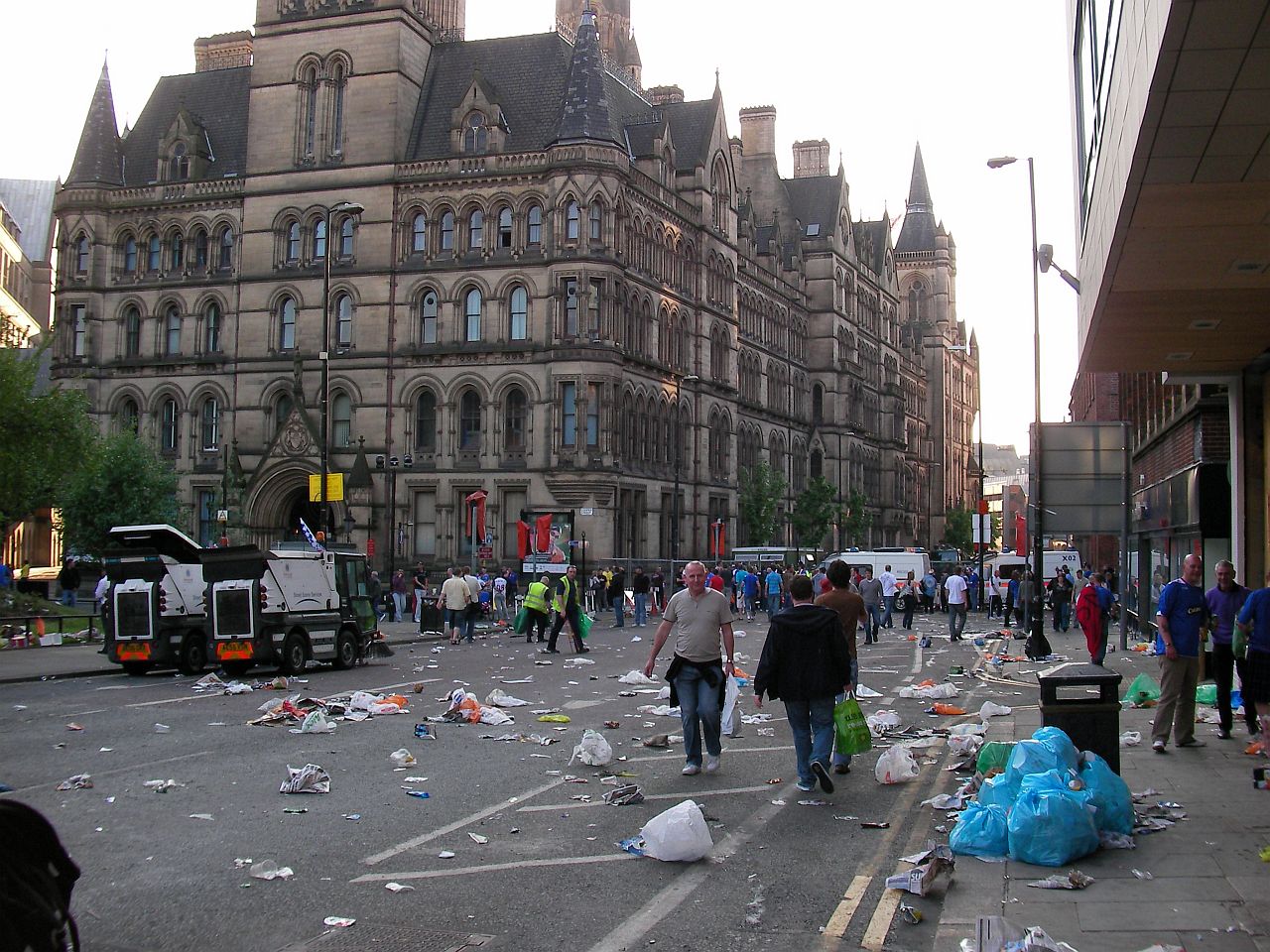 Нашествие скотов началось уже в воскресенье, потихоньку-помаленьку и привалило их без малого 200.000 фанов. А это очень дохуя для такого маленького центра города. По телику слышал, что после двухдневной тусы с улиц выгребли 250 тыщ тонн мусора... Пиздец, это что получается, каждый фанат умудрился насрать в среднем свыше тонны?!