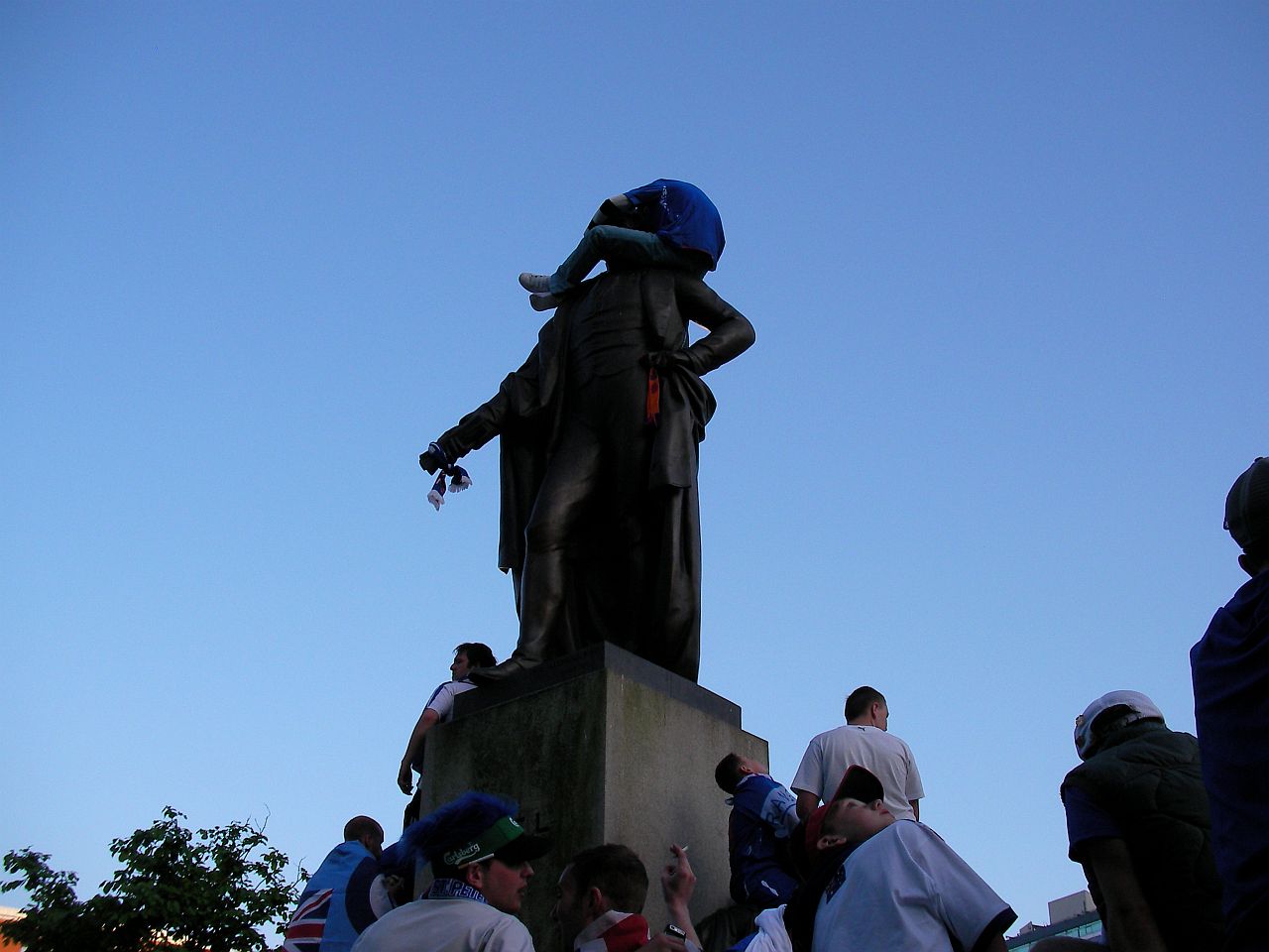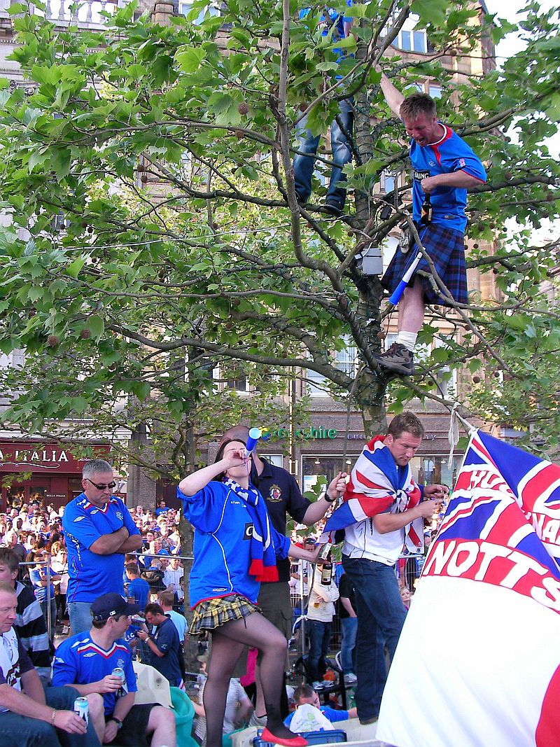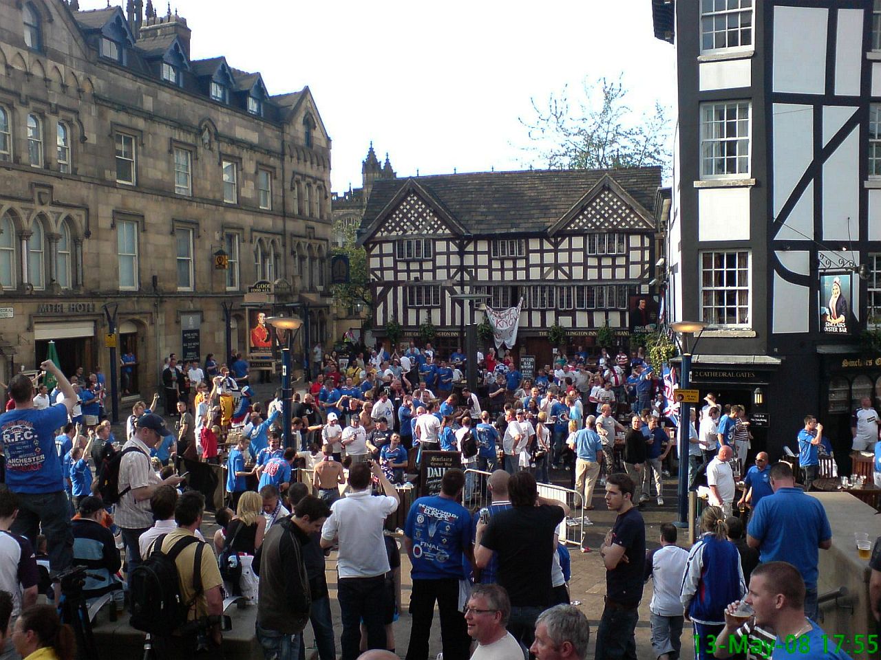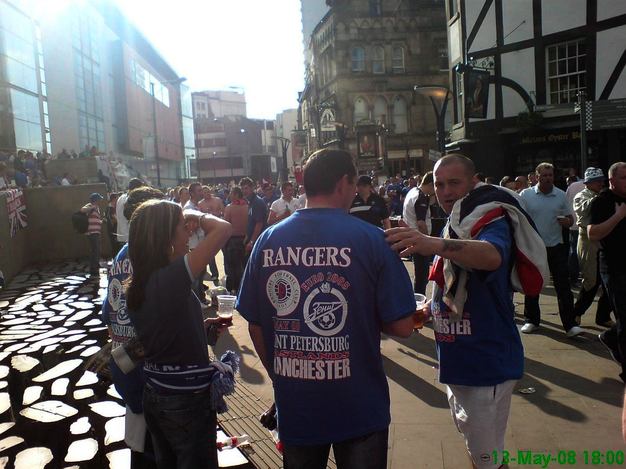 Ну, меня там было, в Манке, как раз накануне матча чиста ходил таблом щёлкал, фтыкал на сложных щщах в скотский акцент, братался и бухал. На игру я, конечно, не попал. Но тем не менее успел застать атмосферу этакого карнавала, это еще до рубилова с полицией.