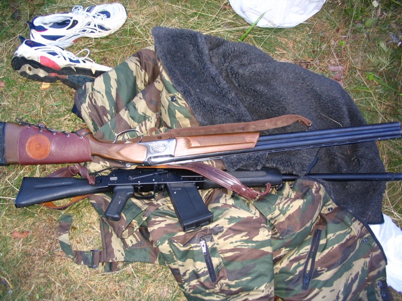 2 Сайги, одна 41 калибра... нахуя? ИЖак заебись с одним спусковым крючком. Походу поцаны гоняле просто в хорошую погоду с хорошей кампанией в хорошее место бухнуть и пошмалять по банкам, а если повезет и по уткам. Но в таком случае (если не охотицца) то должны быть тиолки... а их нема! Незачот нихуя за это!