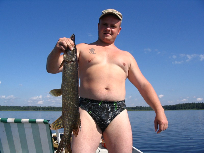 еще - на фотке мужыка со щукой обнаружывается почти что полное отсутствие хуя и яиц в плавках.