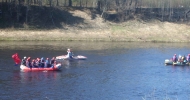 Маршрут от 10 до 35 километров. Два сплава в день. Экипажи комплектуются произвольно, но стараемся пройти все по нескольку раз. Не забывая поклеить порванную байдарку.