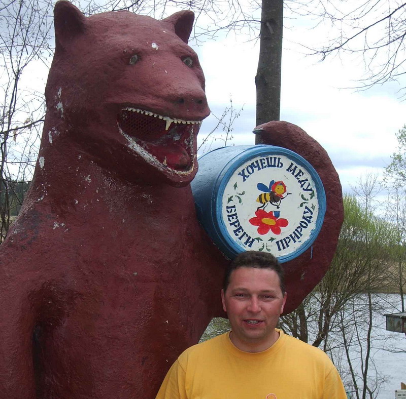 Он фронтовик, похоронил бабку, но и по сей день весь в работе, озвучивает «Превед, это я Медвед!» из дома напротив. В морде медведа – динамик, в доме деда – микрофон. Когда заходишь в сад, и с тобой начинает говорить медвед – чуствуешь себя несколько «смущенным».