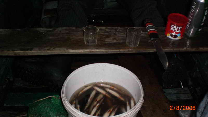 Момент схватили … Крупного ничего не взяли, да и не пытались, гость хотел с удочкой посидеть. Но водочки попили и плотвы наловили … Клевало очень не плохо – потому гость был вообще на грани удовольствия … На рыбалке нас даже ливень с ветром накрыл, что на утлой лодочке, придавало особые ощущения морским волкам …