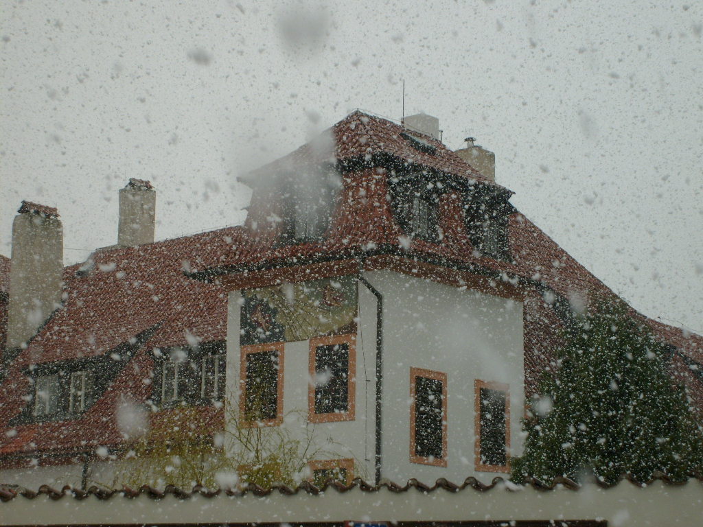 Приземлились мы без происшествий, как-то мягко, в салоне даже как-то лениво захлопали пассажиры. До гостиницы, к чести чехов нас довезла отдельная легковая машина, а не скотовоз или микроавтобус. Чехи были приветливы и услужливы. В гостинице половина персонала была с Украины, а не «из», как нынче модно говорить. За окном старинного особняка на «Бруснице» был виден Пражский град и какой-то дворец. За окном цвел жасмин, и по зеленой траве гордо вышагивали какие-то чешские птицы. Треволнения предыдущих суток выбили нас из колеи, местного времени было десять утра, и мы решили поспать. Через два часа мы снова вернулись в Питер. Вернее в питерскую погоду. Прагу замело и засыпало снегом. Третий раз за отпуск нас догонял снег.
