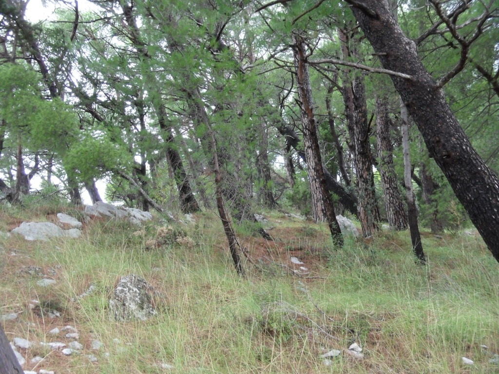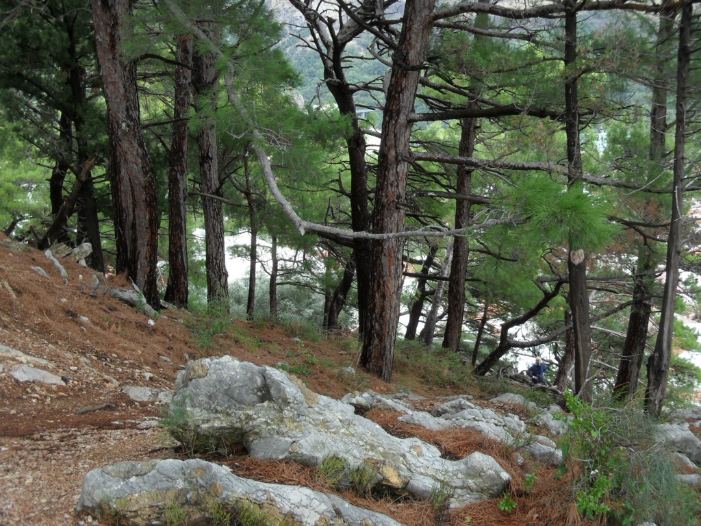 Как наверно уже догадались, справа от меня плескалось Адриатическое море. А слева поначалу шла скальная стена, а потом открылся симпатичный хвойный лесок. «Грибы !» - мелькнуло в одурманенном мозгу, и я зашел в чащу в поисках чего-нибудь этакого, грибного, бля. Благо, сезон и настрой соответствовали.