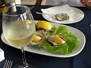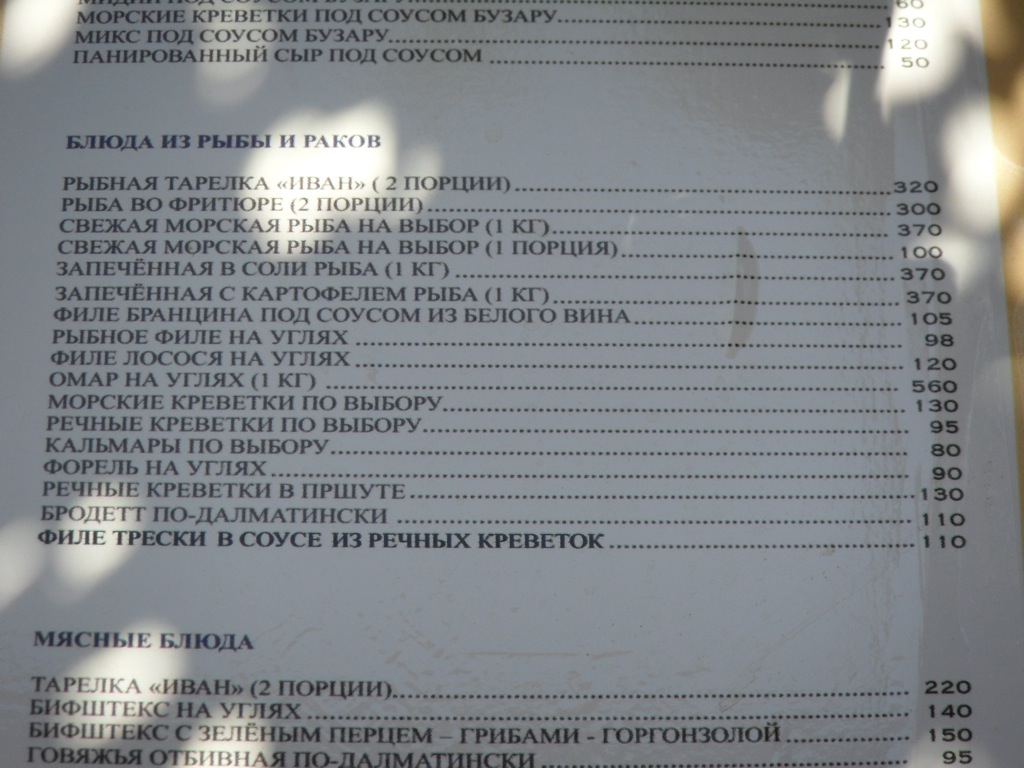 Вообще, общепит в Петроваце порадовал: вдоль пляжа расположены кабаки с большим выбором морепродуктов. Цимес в том, что местные рыбаки, поймав что-то, сразу мчатся сдавать улов в кабак. (При мне какой-то мужик поймал здоровенную зубатку килограмм на десять и тут же продал ее в ближайшую столовку. Почем, правда, не сказал, но, судя по довольной роже, рестораторы его не обидели…). Так вот, данная логистика очень удобна – лежишь себе на пляже и посматриваешь в сторону кабака. Видишь – чего-то несут. Подходишь, интрересуешься. Если устрицы или барабулька – резервируешь столик и в удобное время жрешь заказанное, запивая белым винцом «Крстач». Стоит все это удовольствие порядка десятки на человека. Это если ребенка не баловать. Кстати, мороженное в Черногории охеренное. Наш советский пломбир живет и процветает в этой горной республике. Назывется «сладолед». Только щас понял, что, наверное, это не устрицы свели на «нет» мои потуги похудеть… Столько мороженного я не ел раньше никогда…