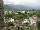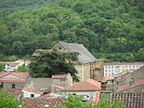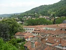 Перекус в Фуа был стандартен: бабе – кофе и суп, дитю – макароны и воду, остальным – рыбу, мясо, овощи, фрукты, сыр  и вино. Сидели на террасе ресторанчика, откуда открывались средневековые виды.