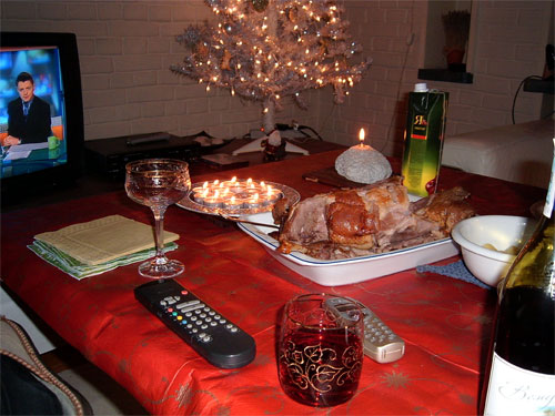 И не курица это, а гусь или што совсем плохо - утка, но захуярена правильно ибо с корочкой и не пригорела, бухло тожи по теме, падонку водку ржаную, его пелотке кислота итальянская,свечи и елка с фанариками ибо рождество анихуя не пьянка , позитифно ахуительно бляттть, тока вот апять год ждать этай беспезды краивой сказки...