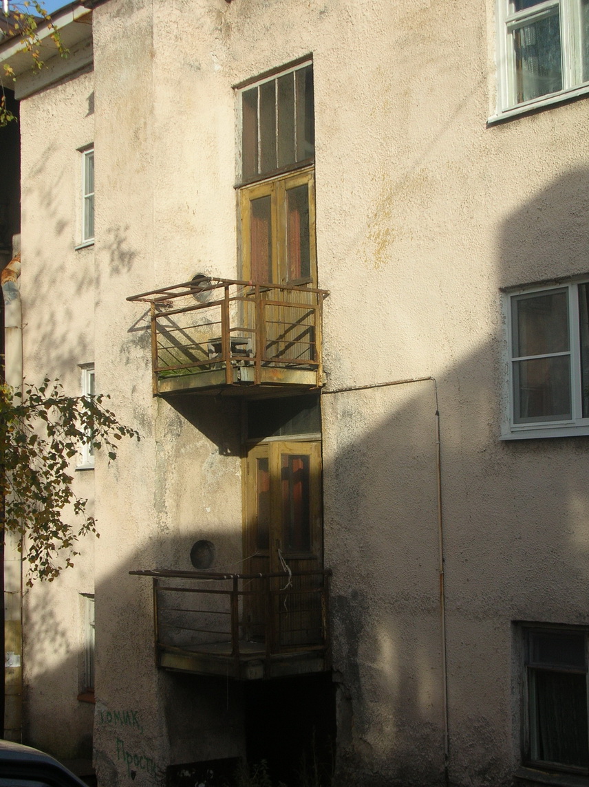 Кароче, говорят, что в феодальные времена в Выборге царь ебанул налог на солнечный свет, и поэтому окошки такие маленькие в подобных зданиях. Их 2 или 3 в городе осталось.