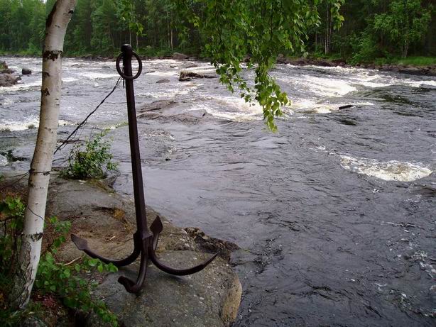 речка Охта, там есть якорь - на острове Добрых Духов на Вороньем озере
