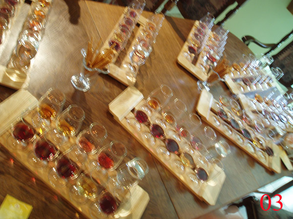 А потом всю ораву запустили в дегустационный зал и тут…… ОООО!! УУУУ!!! АААА!!! Супер!!! Безконтактный Оргазм, б/п. Потрясающий запах вина, винограда, специй…. Просто непередаваемо. Руки начали дрожать, мазги поплыли, вследствие чего качество фоток резко снизилось. Для каждого фтыкателя был выставлен дегустационный набор из одного сухого и восьми красных вин. Судя по размеру дозы в бокальчике-ожидалась икскурсия из децкаго сада, но она пачимуто не приехала, а доливать никто не стал, фото 3.