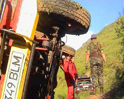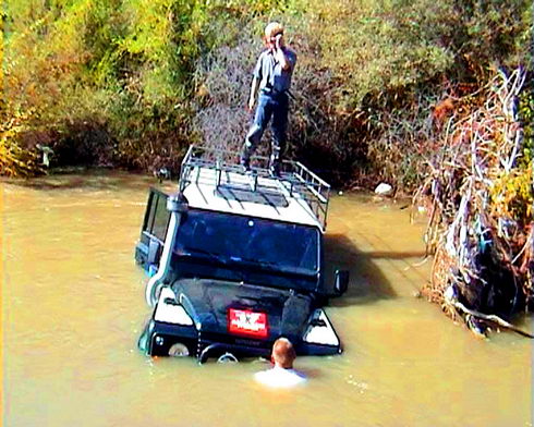 Паламал дамкрат, парвал стропу парашутную (каторую вместо троса использовал), патом парвали ремни бизапасности (каторые снял, штоп вместо стропы парашутной использовать каторую вместо троса). Атарвали две буксирные праушыны, каторые к раме были преварены.