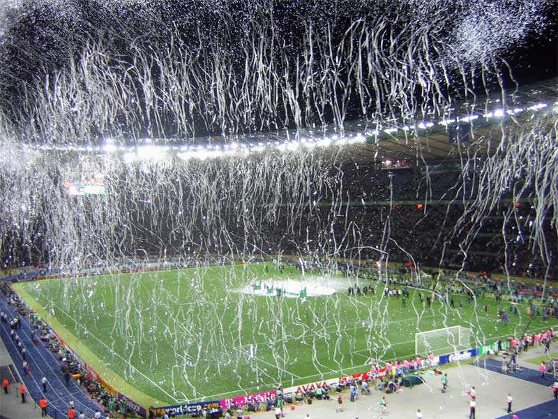 Блять, я весь чемпионат так каталсо....приходишь за час до матча покупаешь билет у спекулей и фперед. И только в гребаном Берлине промазал. Приехал а там какой-то концерт перед финалом идет и фсе билеты нахуй распроданы! Дажы у спекулей! Педоразы! Прешлось смотреть фенал в каком-то китайском сквозняке. Рядом с липовой аллей. Молодец Юник. Искренне завидую. Хотя я и сыкономил штуку евро, но это нихуйа не утешат. Нада было пересечсо с тобой в берлине. Угостить пивом аффтара кырпичей.