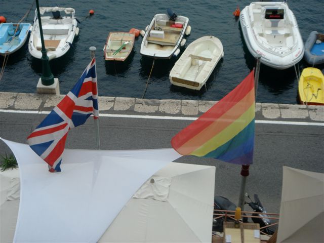 Здорово, Фаллос. Сам в душе не ебу! Потому и сфотал. Натурально, вилла около Антибовки, прямо на берегу - и джыдайский флак. Нипанятна.