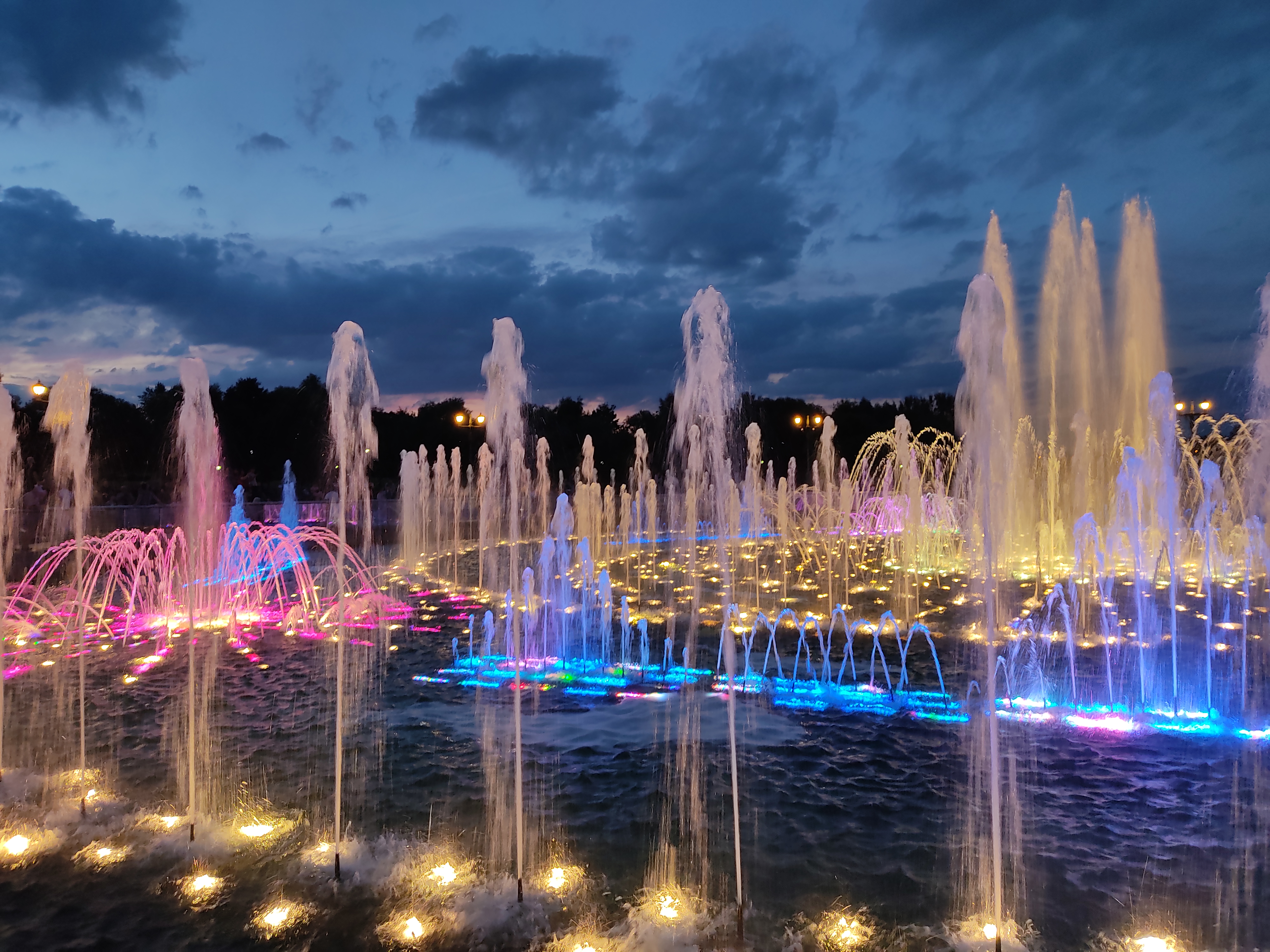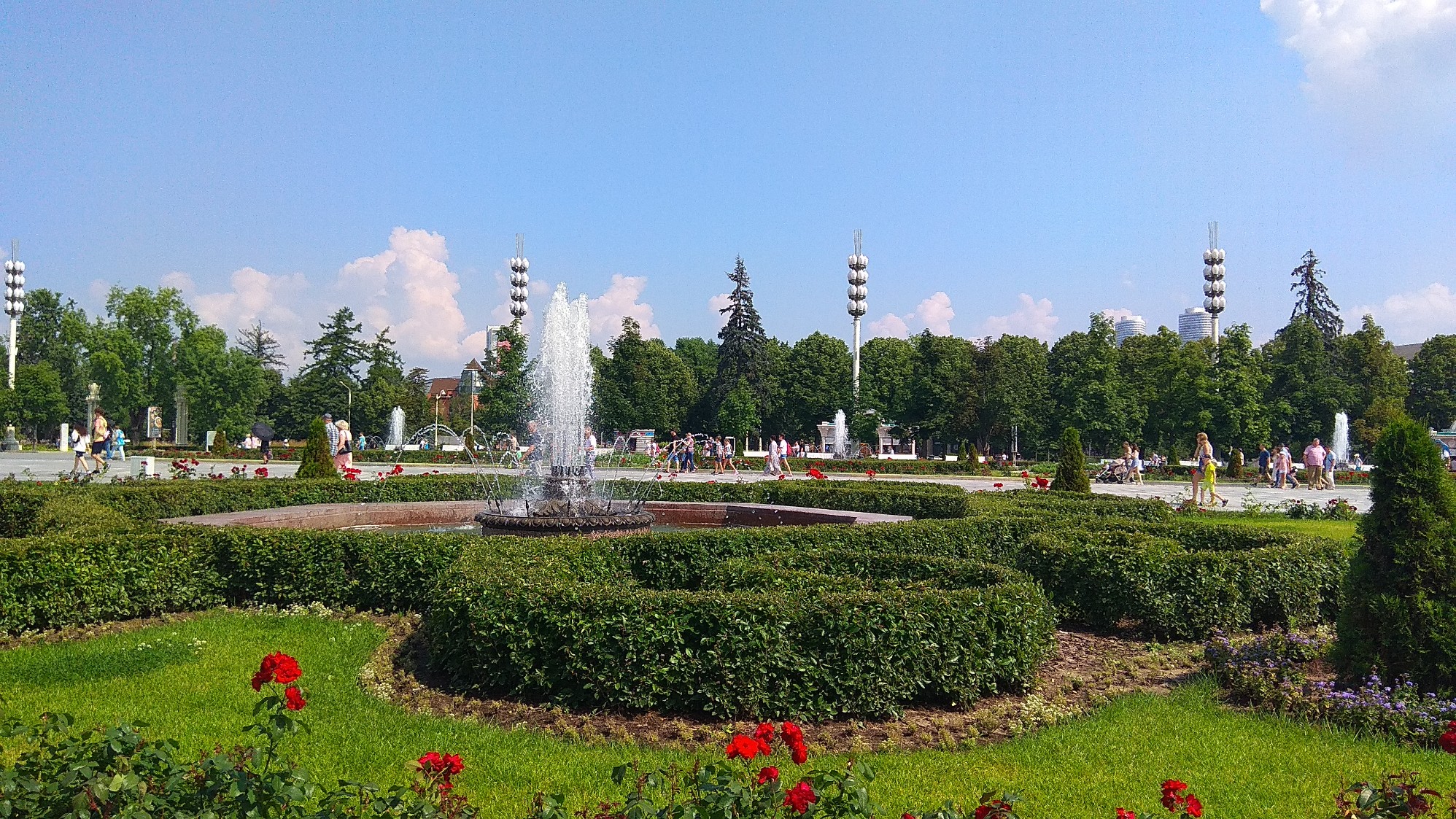 Они меня сфотографировали на фоне фонтана Дружбы народов.