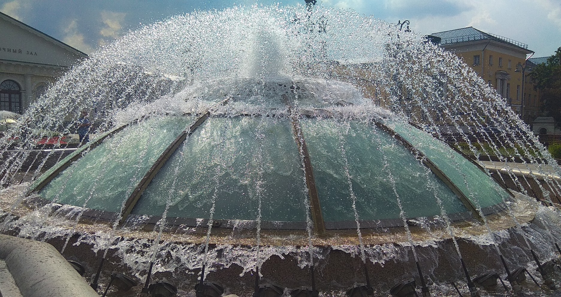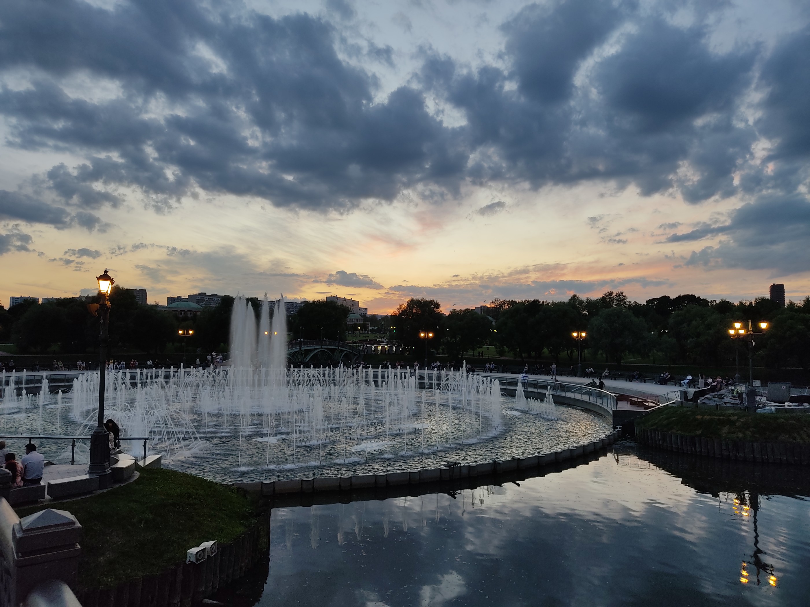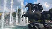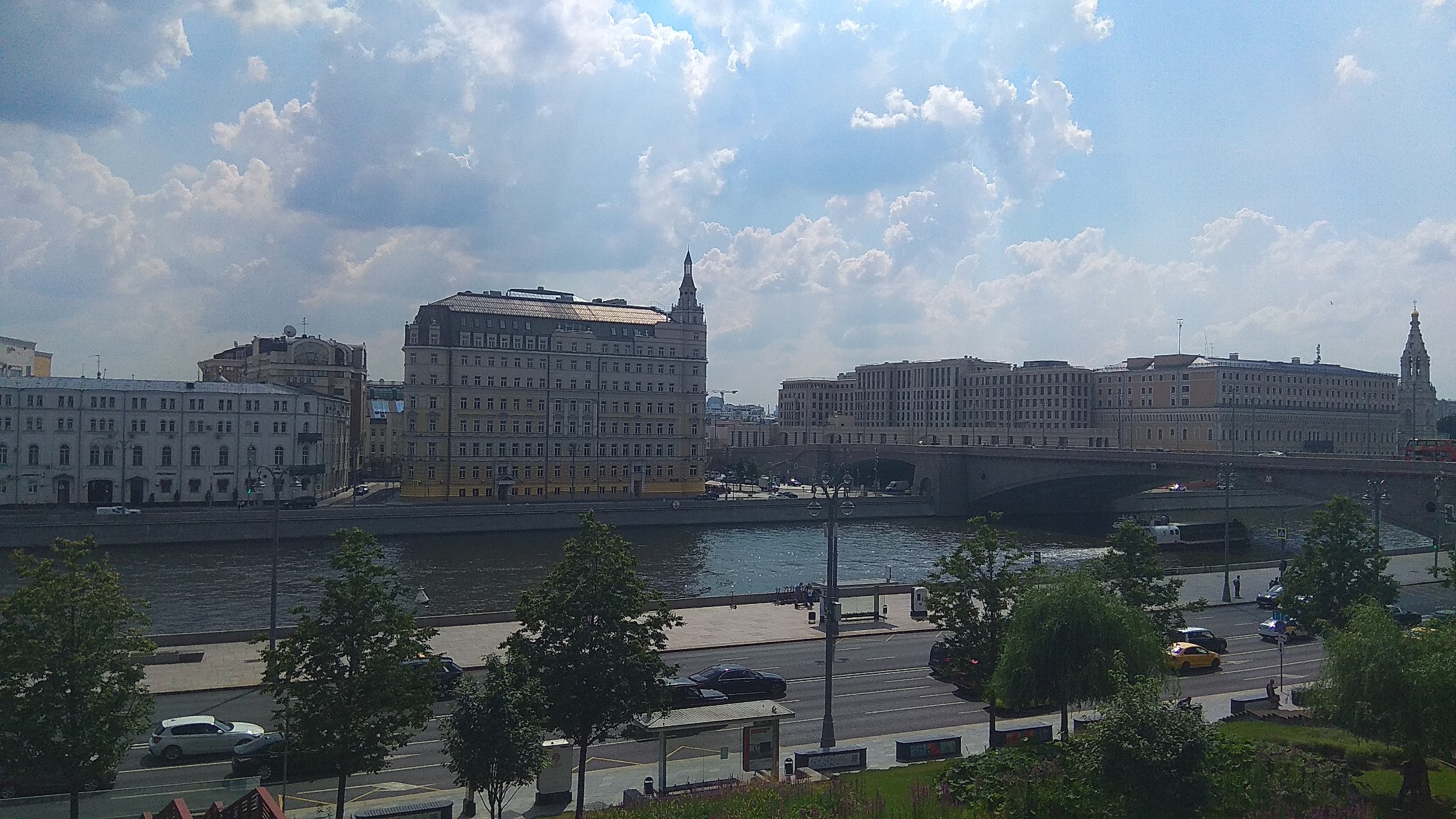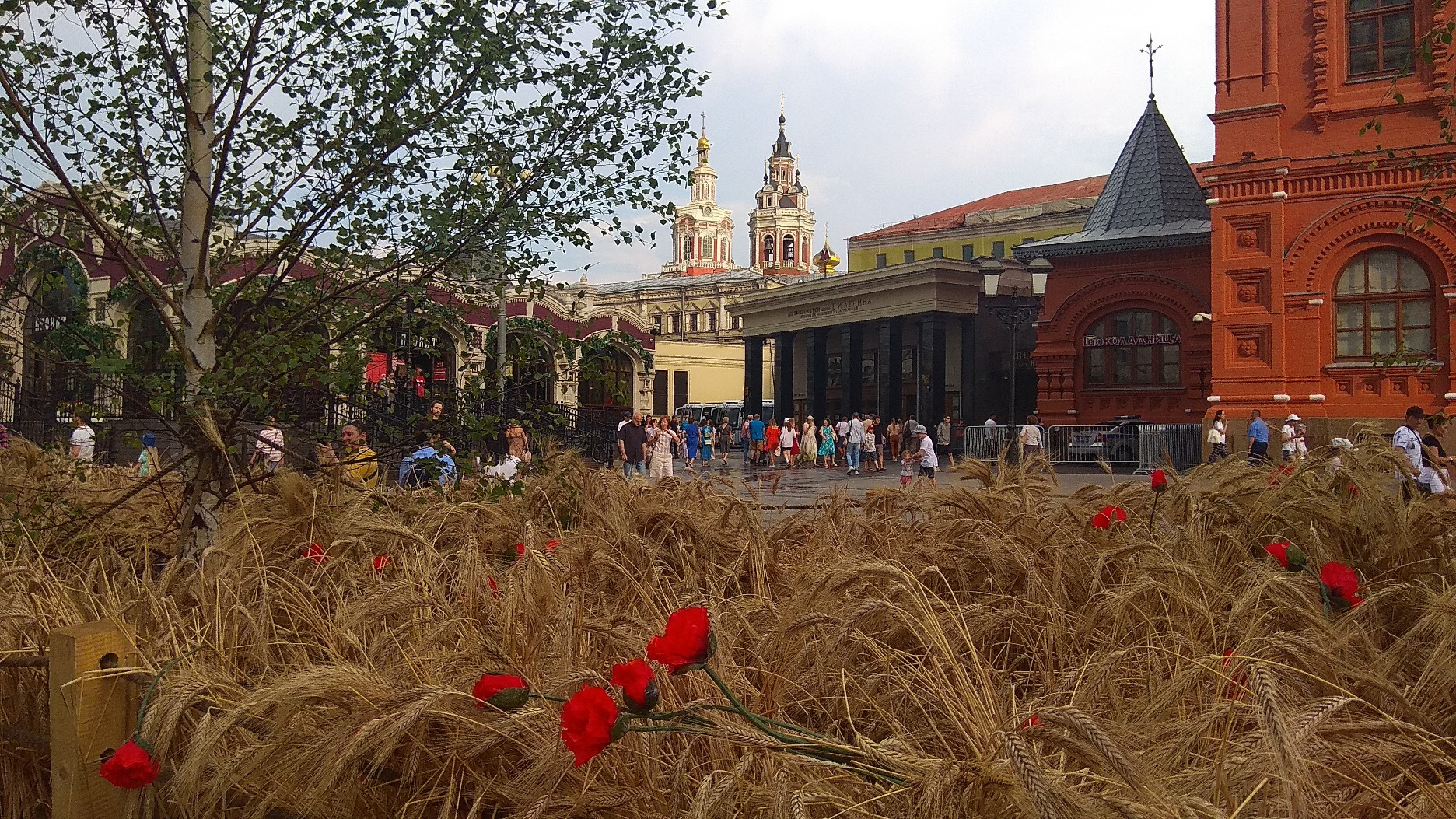 Учитывая краткий срок пребывания, надо было успеть метнуться по «классическим экскурсионным местам». Сначала поехали, конечно, на главную площадь страны – погуляли по окрестным улочкам, поели знаменитого  (трендового, ога) мороженого в ГУМе, приняли освежающий душ из поливальных машин на самой Красной площади. Это было клево, тем более в летнюю жару одежда высыхает мгновенно. Кстати, в гастрономе ГУМа был замечен в продаже наш белёвский зефир, что не могло не порадовать. Памятник Минину и Пожарскому стоит в лесах, идет ремонт. К дедушке Ленину никаких очередей (вспомнила советские времена – каков контраст, хех). Урн на площади и в окрестностях нет – меры антитеррористической безопасности, полиция дежурит, иностранцев немного, в отличие от прошлых лет, видимо боятся, как бы их в связи с мировыми событиями не задрали  агрессивные русские медведи. Мы посетили парк Зарядье, он новый, я там еще не была. Побродили по Александровскому саду, потусили возле фонтана с лошадьми на Манежной. Возле воды прохлада и кайф. Народ сидит прямо на газонах, на европейский манер, дети плещутся в фонтанах. Наш великовозрастный ребенок изъявил желание отведать  фаст-фуда.  Макдаки по Москве закрылись, вместо них те же фаберже под названием «Вкусно - и точка». Всем семейством радостно нахомячились Гранд ДеЛюксом (оказалось весьма неплохо на вкус, или просто мы были голодные), как раз очень удобно пережидая внезапно обрушившийся на Манежку ливень. Кстати и так народу очень много, мы еле нашли свободный столик, так еще люди набились в кафе, спасаясь от дождя, как шпроты в банку.