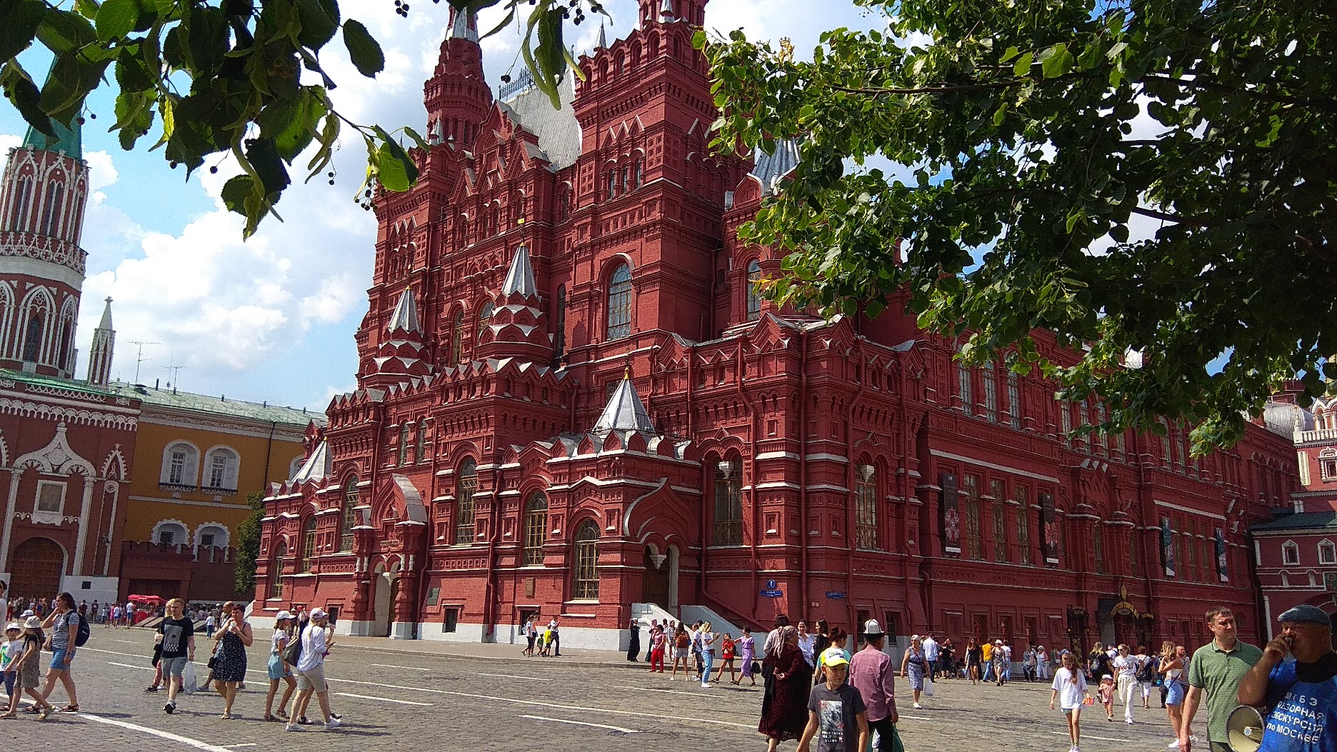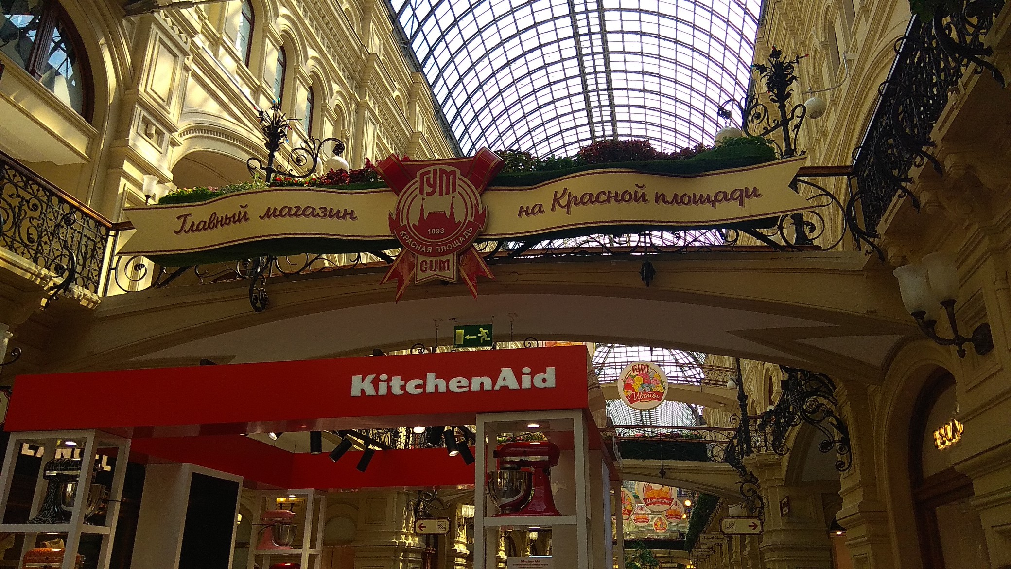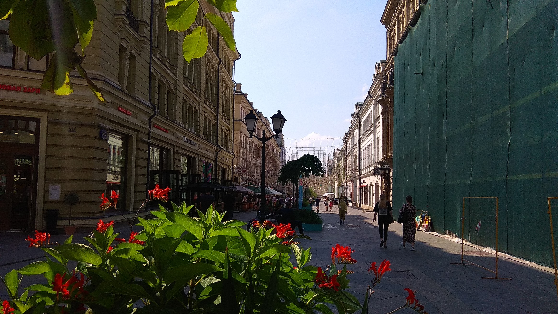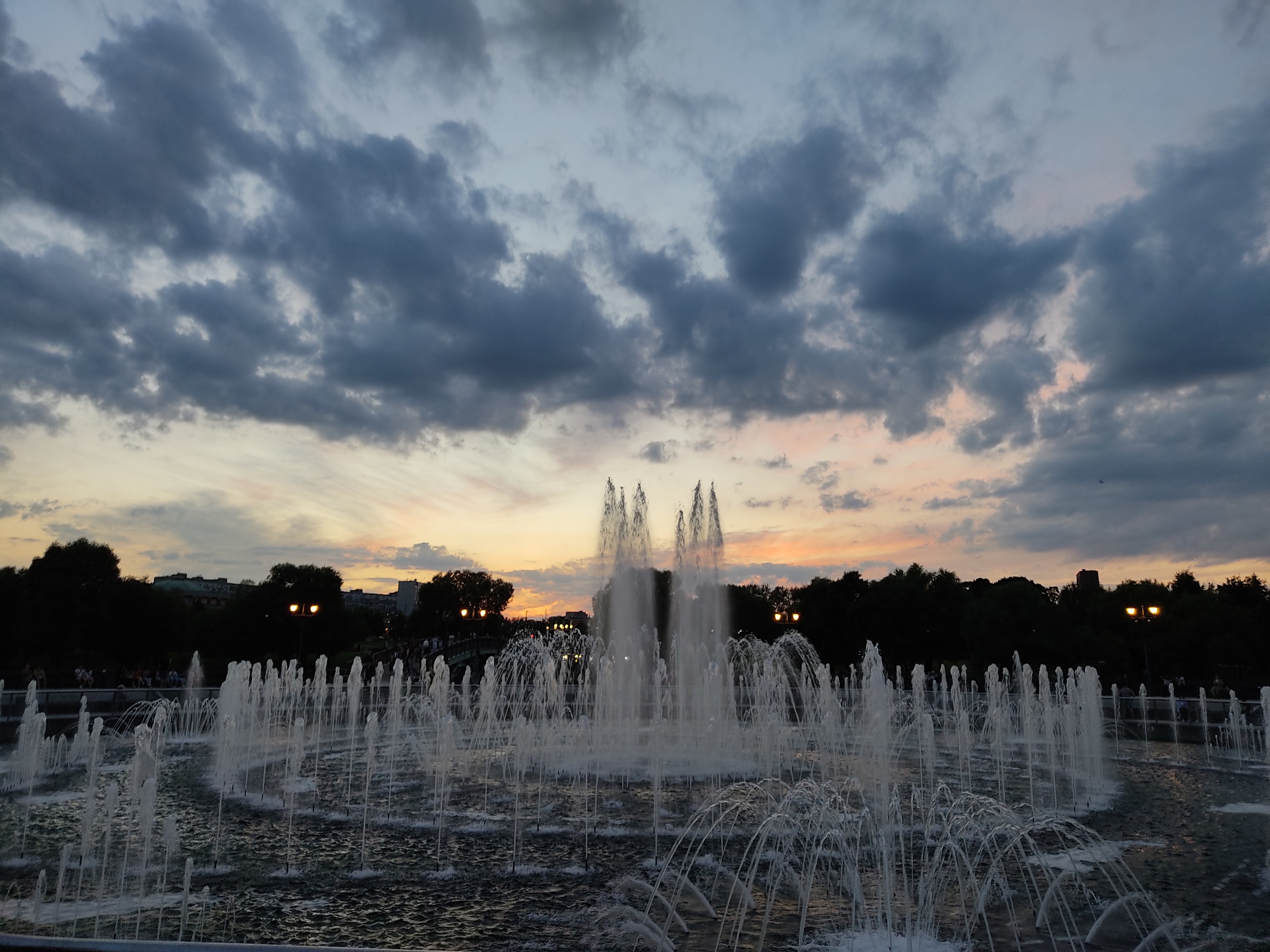 Учитывая краткий срок пребывания, надо было успеть метнуться по «классическим экскурсионным местам». Сначала поехали, конечно, на главную площадь страны – погуляли по окрестным улочкам, поели знаменитого  (трендового, ога) мороженого в ГУМе, приняли освежающий душ из поливальных машин на самой Красной площади. Это было клево, тем более в летнюю жару одежда высыхает мгновенно. Кстати, в гастрономе ГУМа был замечен в продаже наш белёвский зефир, что не могло не порадовать. Памятник Минину и Пожарскому стоит в лесах, идет ремонт. К дедушке Ленину никаких очередей (вспомнила советские времена – каков контраст, хех). Урн на площади и в окрестностях нет – меры антитеррористической безопасности, полиция дежурит, иностранцев немного, в отличие от прошлых лет, видимо боятся, как бы их в связи с мировыми событиями не задрали  агрессивные русские медведи. Мы посетили парк Зарядье, он новый, я там еще не была. Побродили по Александровскому саду, потусили возле фонтана с лошадьми на Манежной. Возле воды прохлада и кайф. Народ сидит прямо на газонах, на европейский манер, дети плещутся в фонтанах. Наш великовозрастный ребенок изъявил желание отведать  фаст-фуда.  Макдаки по Москве закрылись, вместо них те же фаберже под названием «Вкусно - и точка». Всем семейством радостно нахомячились Гранд ДеЛюксом (оказалось весьма неплохо на вкус, или просто мы были голодные), как раз очень удобно пережидая внезапно обрушившийся на Манежку ливень. Кстати и так народу очень много, мы еле нашли свободный столик, так еще люди набились в кафе, спасаясь от дождя, как шпроты в банку.
