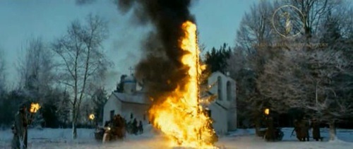Но так как фильм как-бы патриотеческий, то отец Александр попав служить в деревню Закаты Псковской губернии, ничего из этого делать не стал, кроме конечно восстановления храма (ибо жить и работать где-то же нужно), а наоборот начал немцам подгаживать: то в концлагерь шмоток и жратвы завезет, то убиенных партизанами полицаев отпевать не станет. Немцы на все это демократично закрывали глаза, и только плясали на Рождество вокруг костра и весь фильм фотографировались, причем пачиму-то на цыфровики или полароиды по принципу «щелк»-снимок. Аккупанты, хуле.