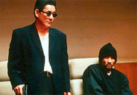 А с ипонским, бля, ни все так проста. Но для начала скажу пару слов о режисере и аднавременна испалнителе главной роли в этам шидевре, Такеши Китана (эта ипониц с нипраницаемым лицом и в ачках). Китана - эта бля Клинт Иствуд азиатского кино, уважаимый в Ипонии режисер и актер, а ищо и писатель, сценарист, композитор, и даже художник - кое-какие картинки можна увидеть в его потрясасающем глубиной чувств фильме "Фейерверки". Вообщим - чилавек агромнаго таланта. В 1994 году он так въебался на свайом матацыкле, что дохтура еле его по кусочкам сабрали, но палавина лица асталась таки парализована, што типерь накладывает неизгладимый атпечаток на его внешнасть.