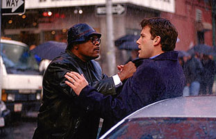 Хотя название фильма берет свое начало с инцендента на автостраде Нью-Йорка, мотив больше о смене линий поведения. Юрист Аффлек спешит в суд отсудить 100 миллионов долларов у бедных несчастных детей Нью-Йорка в пользу злых и кровожадных акул капитализма. По пути он меняет линию и подрезает С.Л.Джексона, который спешит в суд чтоб отсудить право на визит к своим бедным несчастным черномазын отпрыскам у жены с которой он в разводе.