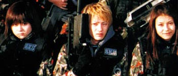 Долго голову себе Кента ебать не стал и обычную подростковую проблему раздул до полноценной классовой войны - теперь дети это общественный класс и упорно пытаются объяснить государству и взрослым про свои права посредством террактоф. Используются такие злободневные проблемы прошлого и настоящего как терроризм, Америка, ядерная бомбардировка Японии в 45. Я ваще фильм воспринял как попытка мести Америке за 45, только очень она тщедушная и жалкая. Дальше - хлеще, Государство в фильме отождествлено с Америкой а дети с партизанами и весь фильм по сути оправдываение террора. Учитывая события и поведение янкоф, вообще-то, можно было выстроить состоятельную линию обвинения. Но Фукасаку прет напролом, положив хуек на возражения защиты и элементарные законы логики, закидывая например обесцвеченных японцев с АК 47 в руках в АФГАНИСТАН!!! Защищать мирных пуштунов от янкаф. Блять ну это тоже самое что заборска негроф-диверсанотов в сугробы Сибири для защиты мансей. Причем не с М-16, а винтовкой Мосина.