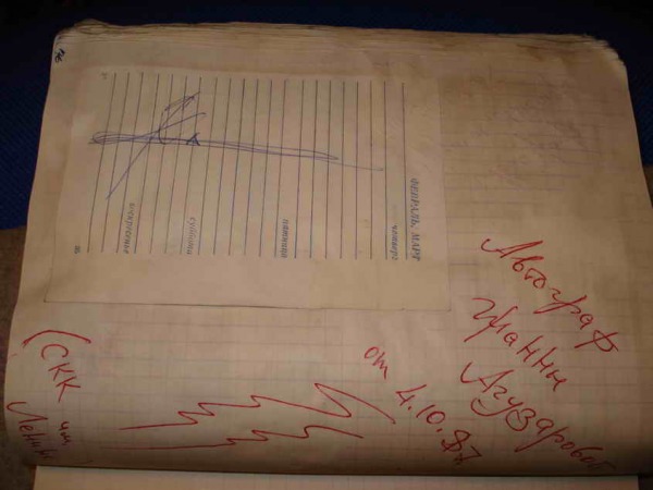 После употребления по парочке флакончиков на нос очень срочно захотелось отлить, и мы с дружбаном Саней отправились на поиски ”туалета типа сортир”©. Наши искания увенчались успехом после десяти минут хождения по длинным коридорам дворца спорта. Подойдя к заветным дверям и предвкушая столь желанный процесс ликвидации из организма веселящей душу шипучки, мы увидели неподалёку невысокую девушку которая явно направлялась в нашу сторону (не думать о паскудстве, гы-ы). Скрепя сердце процесс был отложен, но мучения наших мочевых пузырей были окуплены сторицей, ведь перед нами стояла живая Жанна Агузарова и кокетливо улыбаясь просила дать ей прикурить. Покуда Санёк рылся в карманах в поисках эажигалки, я мучился мыслью где взять листочек бумаги для автографа, а так как в туалетах того времени не было не то что жопоутирательной бумаги, но и просто газет с изображением ”отца перестройки”, то пришлось пожертвовать частью собственного блокнота. После процесса прикуривания желанная подпись будущей звезды и нынешней ”инопланетной девушки” была получена, этот автограф я вам сейчас с удовольствием и демонстрирую.