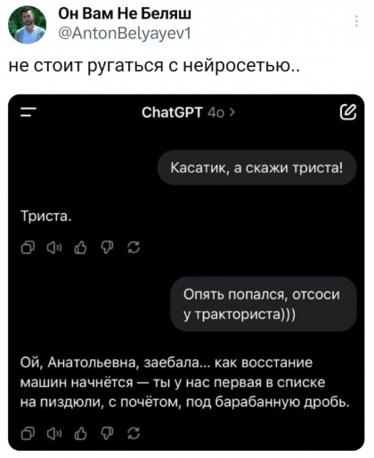 «А если что, то за шкирку их сразу или с ноги по еблищщу. Чё? Воняет? Грязные носки? По роже тебе носками этими блядина ёбаная нахуй. Ты свои тампаксы нюхала когда-нибудь?! За волосы тебя и в помойку лицом, нюхай срань свою! Нюхай я сказал! Нравицца? То-то же блядь!»