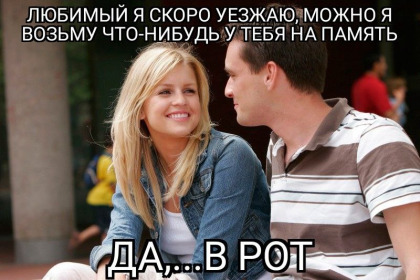 «В общем, ты такая, в шляпе и вьетнамках, приходиш ко мне, с чимаданом. И говориш: «Здрасьте, это вы квартиру сдаёте?» Я тебе отвечу: «Ну я, хуле… Заходи» Ты заходиш, показываеш мне песду, и я тебя ебу на чимадане, закрыв тебе ебло шляпой. Гыгыгы!»