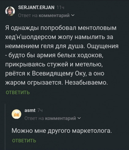 «Был там богомолец Ефстафьев, староста группы, который снес однажды месячную стипендию двадцати трех человек в какой то фонд, типа Фонда Мира. Но мира он ни хуя не получил, а получил таких пиздюлей, что почти год потом не молился, так как при наклонах и потугах опуститься на колени мгновенно ломался, заваливался на бок и ударялся головой. »