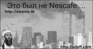 бля не тупите падонки. здесь суть в том, что Америка обманула БинЛадена, напоив его вместо Нескафе дешевым пойлом. Хотя по сути Нескафе и есть дешевое пойло. А фраза "Это был не нескафе" из старой рекламы, про бабульку, которая очень любила пригубить стаканчик и ее там накбали. ну что тут непонятного. достаточно своеобразный взгляд на проблему. зачет.